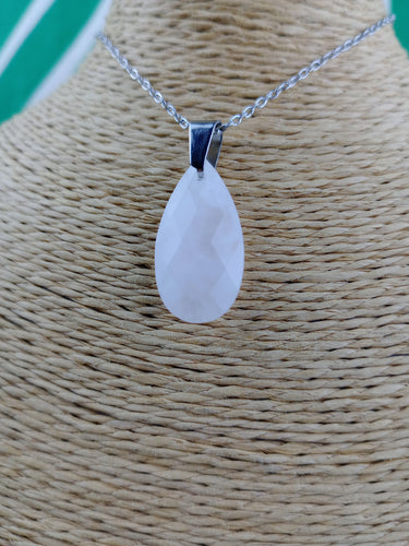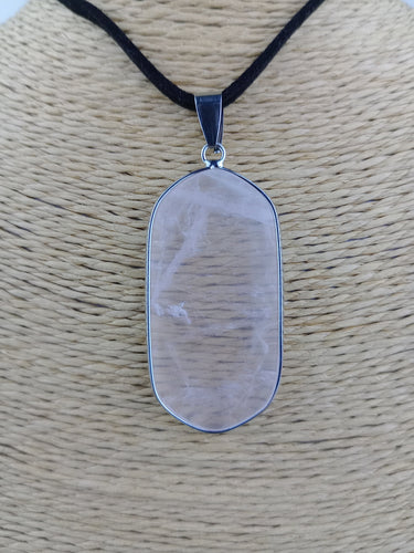 Colgante Cuarzo Rosa Perfil Acero Rectangular