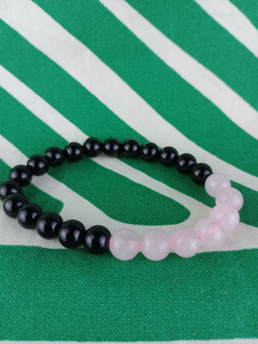 Pulsera Cuarzo Rosa + Obsidiana negra