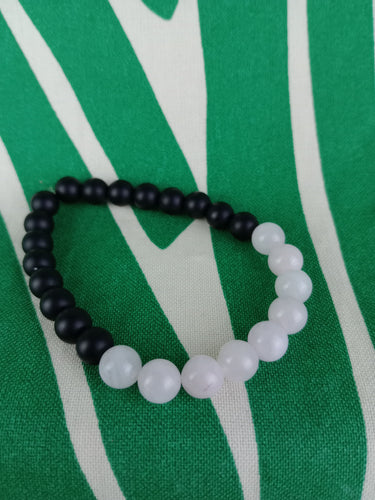 Pulsera Elástica Cuarzo Rosa + Perlas Negras 8mm