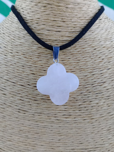 Colgante Trebol Suerte 4 Hojas Cuarzo Rosa