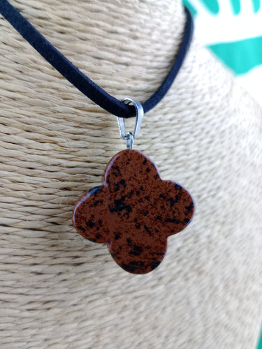 Colgante Trebol Suerte 4 Hojas Obsidiana Caoba