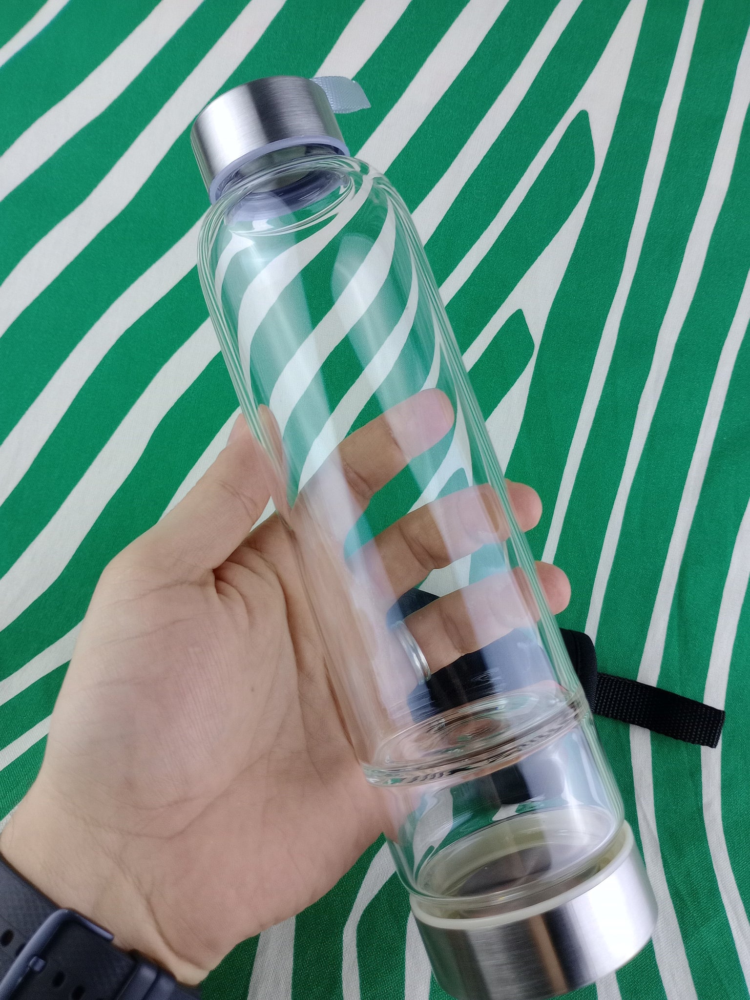 Botella con doble camara de cristal para hacer elixires de mineral sin transmitir toxinas de estos.