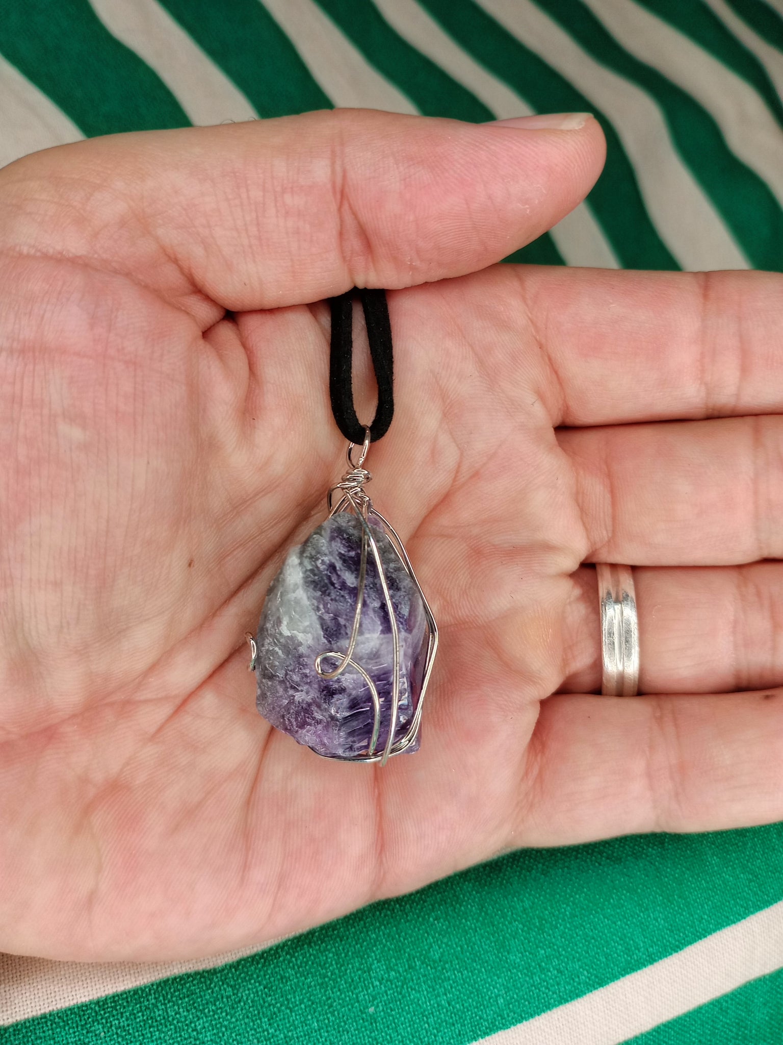 Material: Mineral natural Medida: 3 x 2.5 cm aprox. Incluye cordón negro.