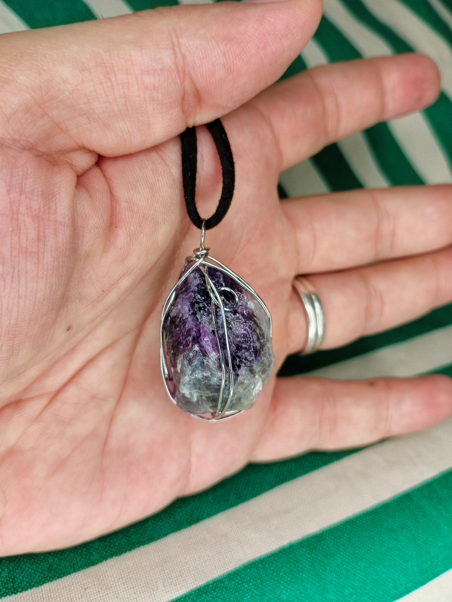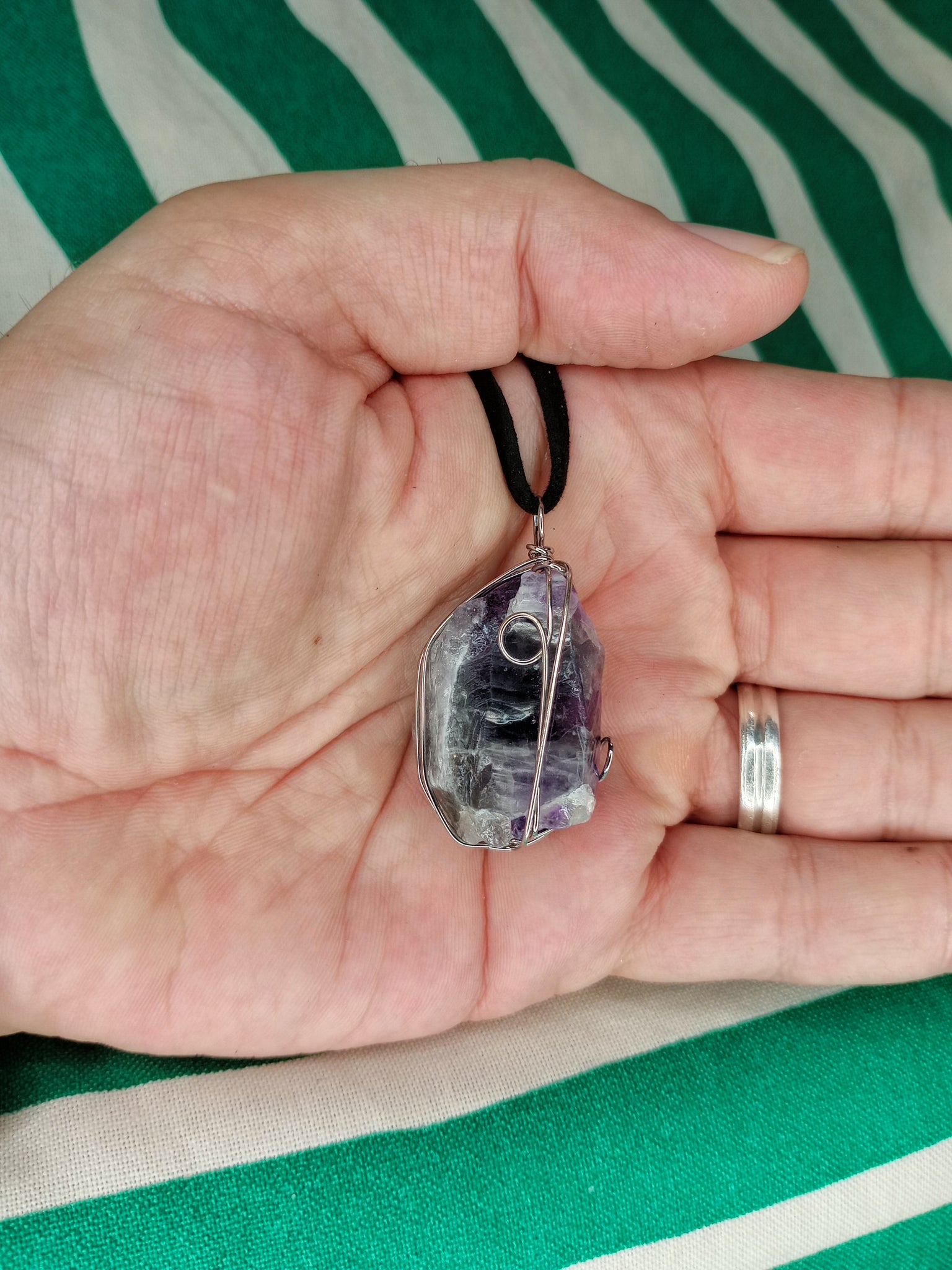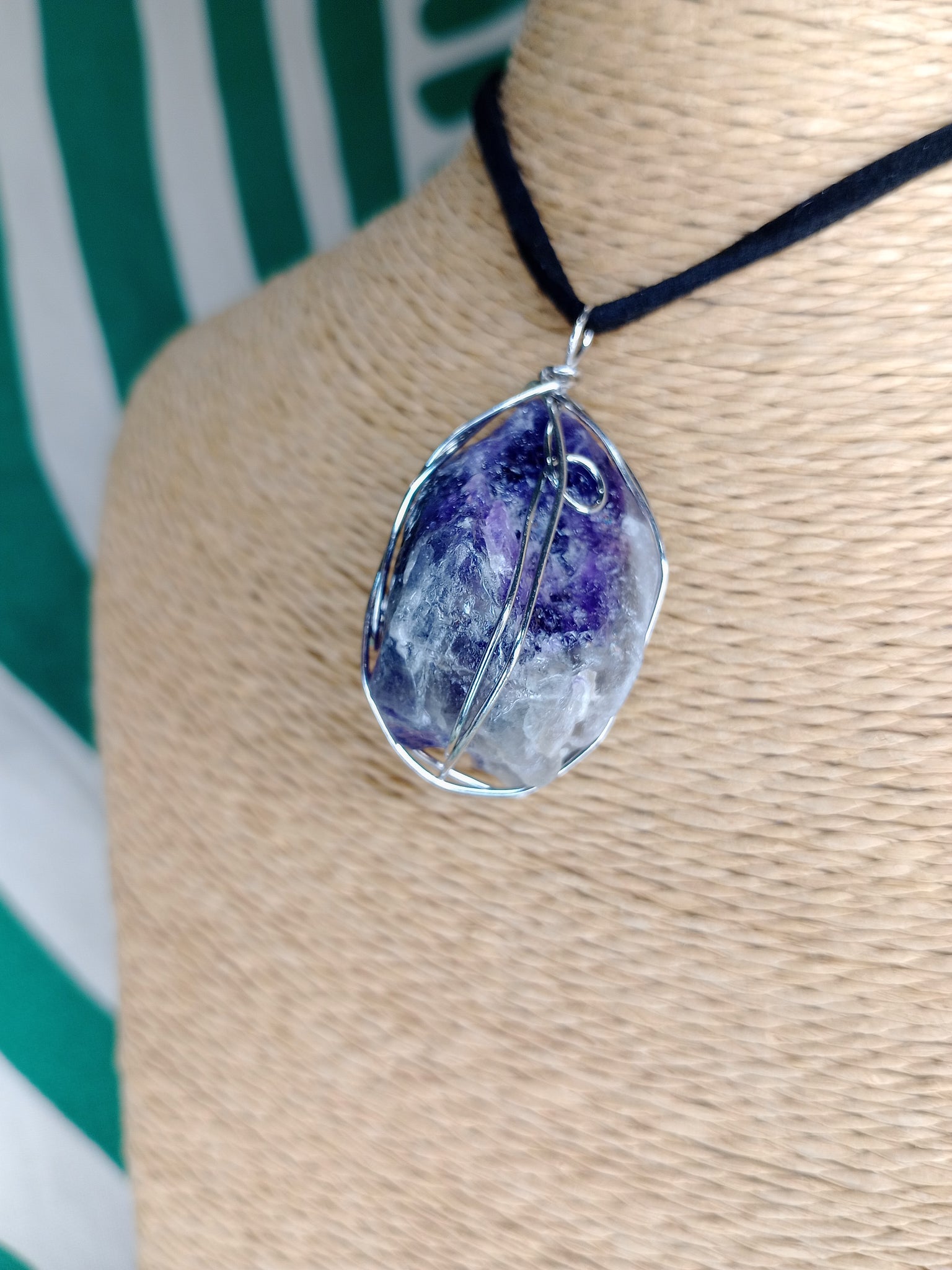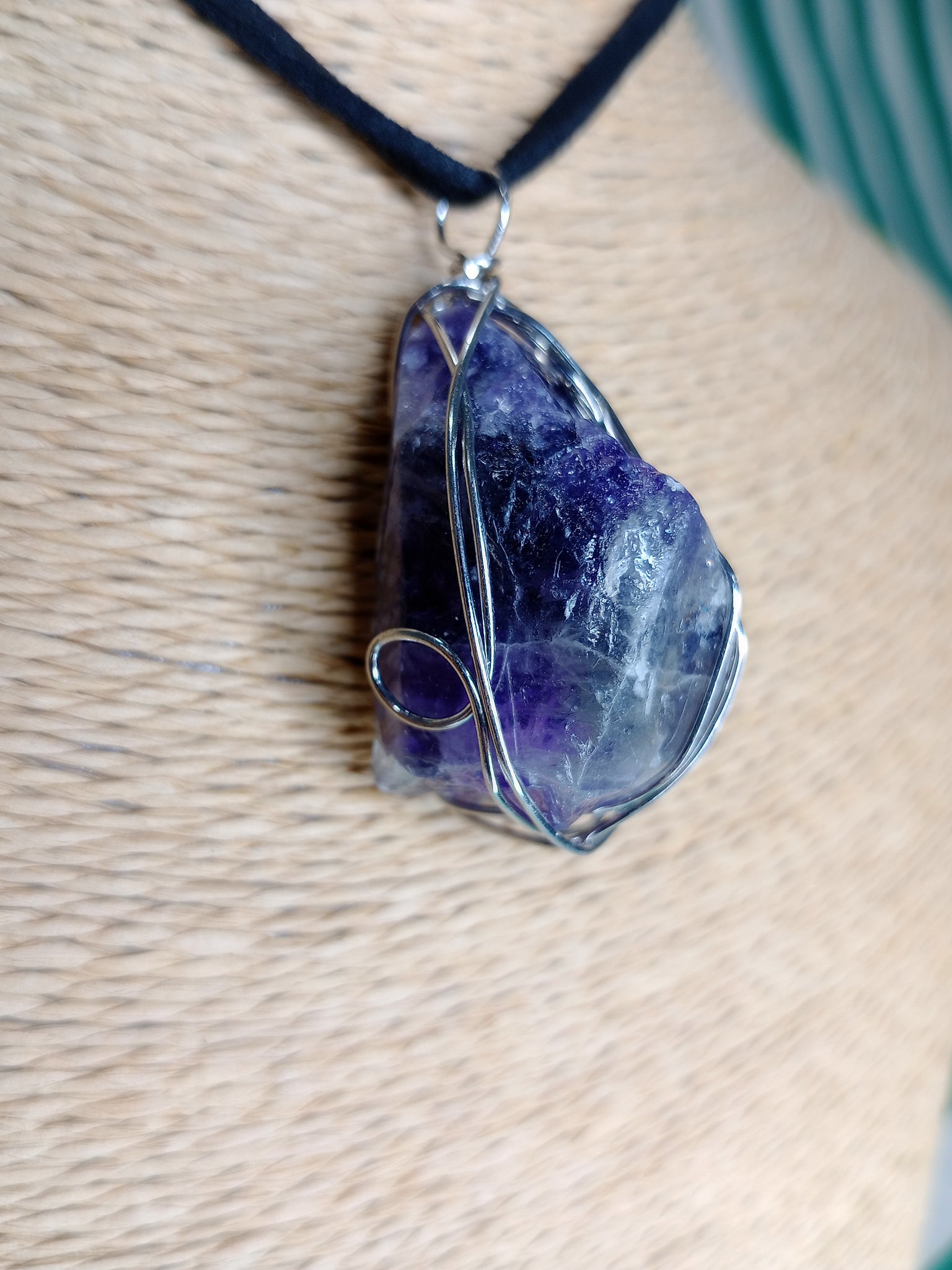 Material: Mineral natural Medida: 4 x 2.5 cm aprox. Incluye cordón negro.