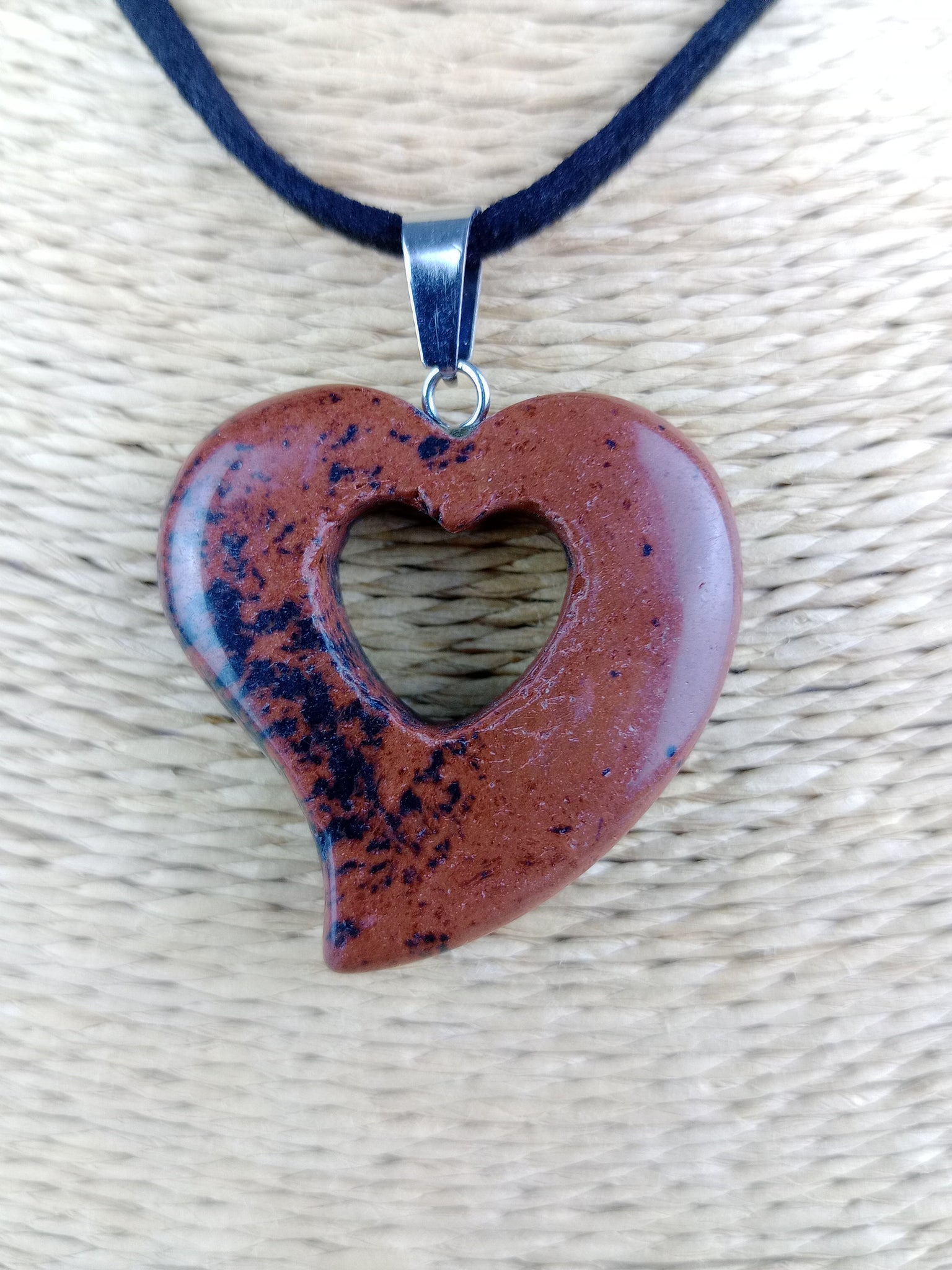 Colgante Corazon Tallado Obsidiana Caoba Mod 1