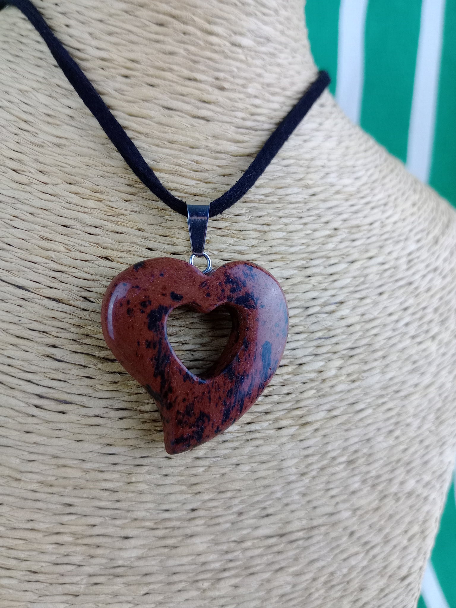 Colgante Corazon Tallado Obsidiana Caoba Mod 2