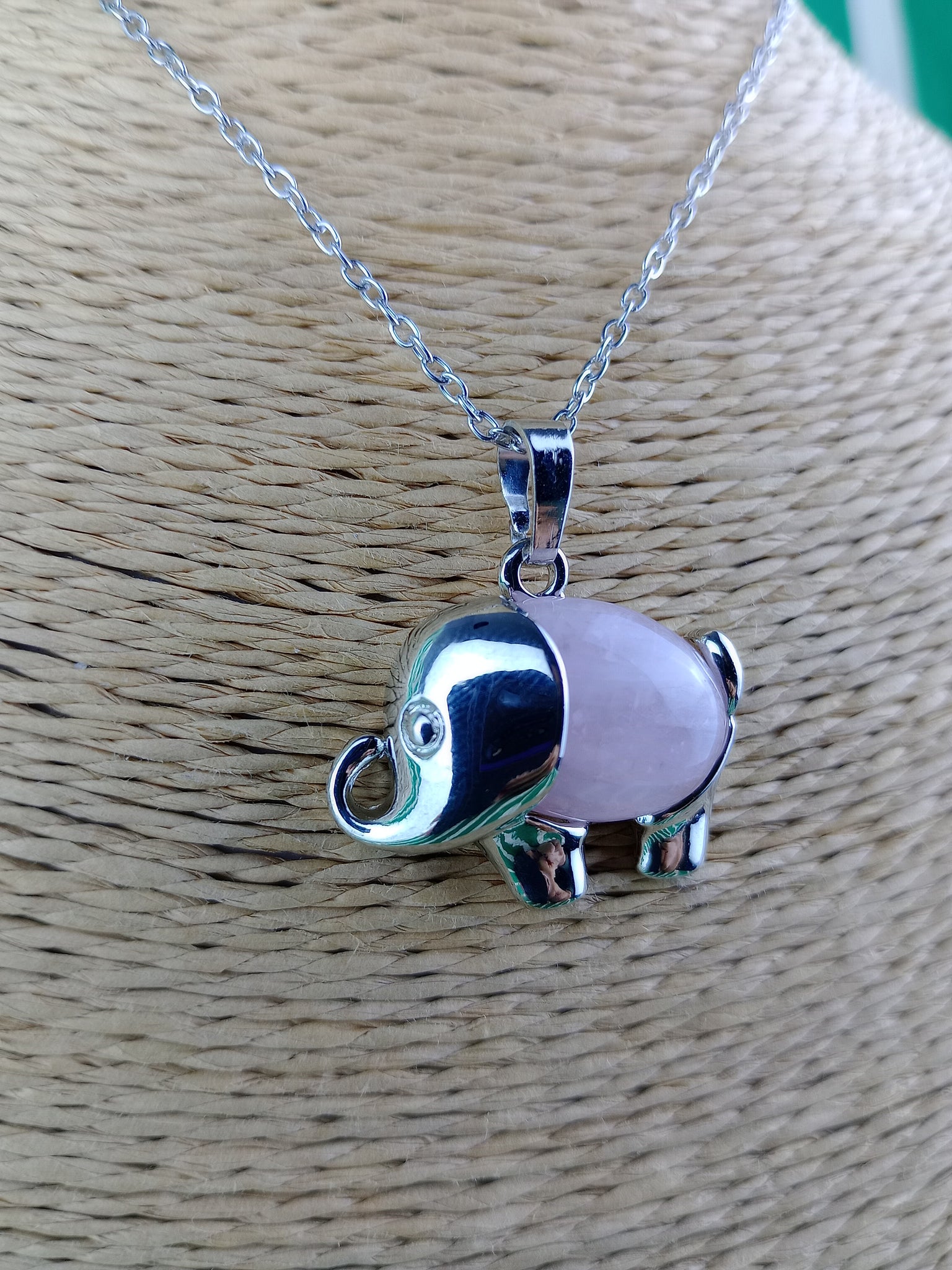 Colgante Elefante Cuarzo Rosa