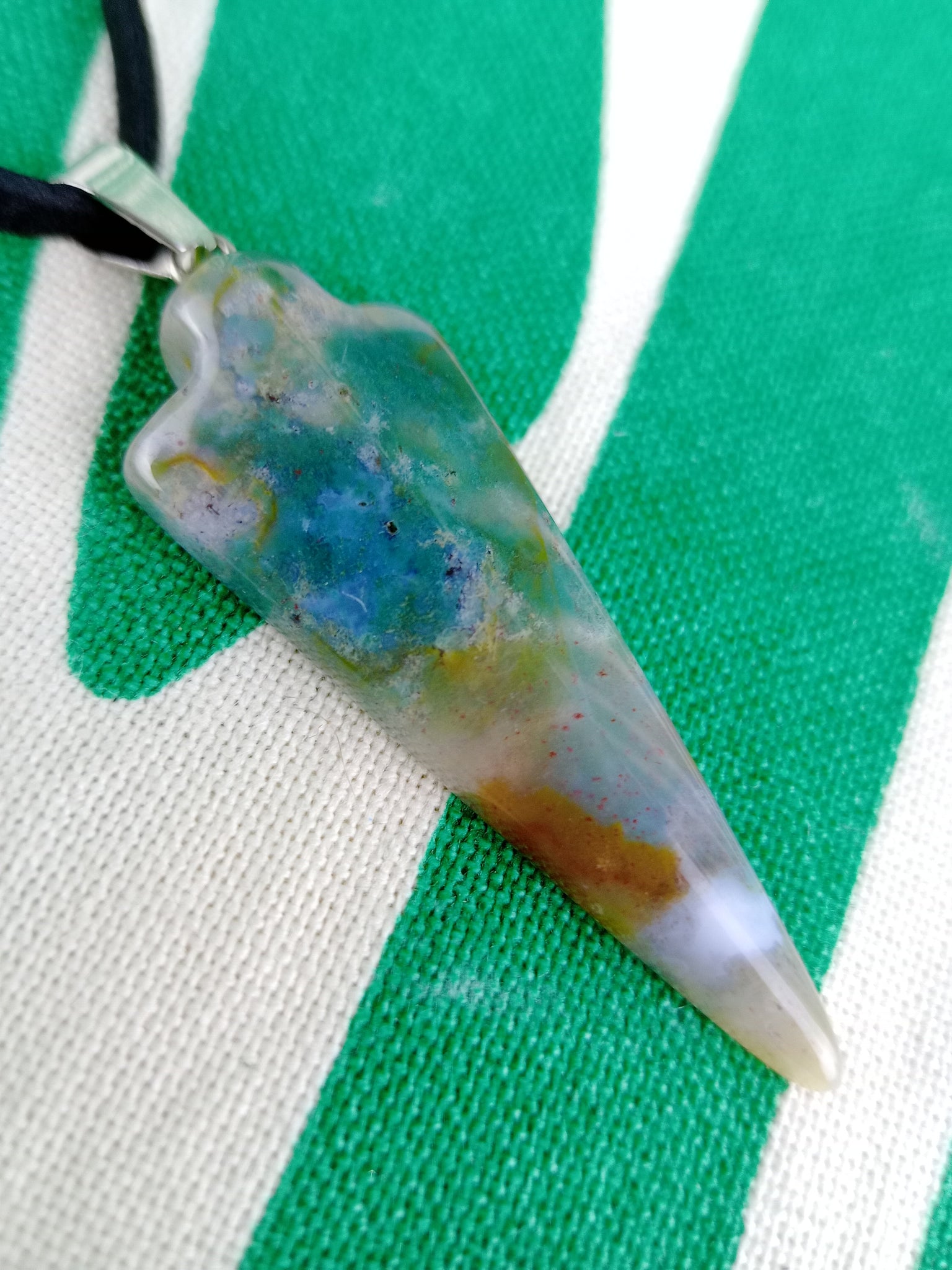 Material: Mineral natural Medida: 4.5 x 2 cm. Incluye Cordón negro