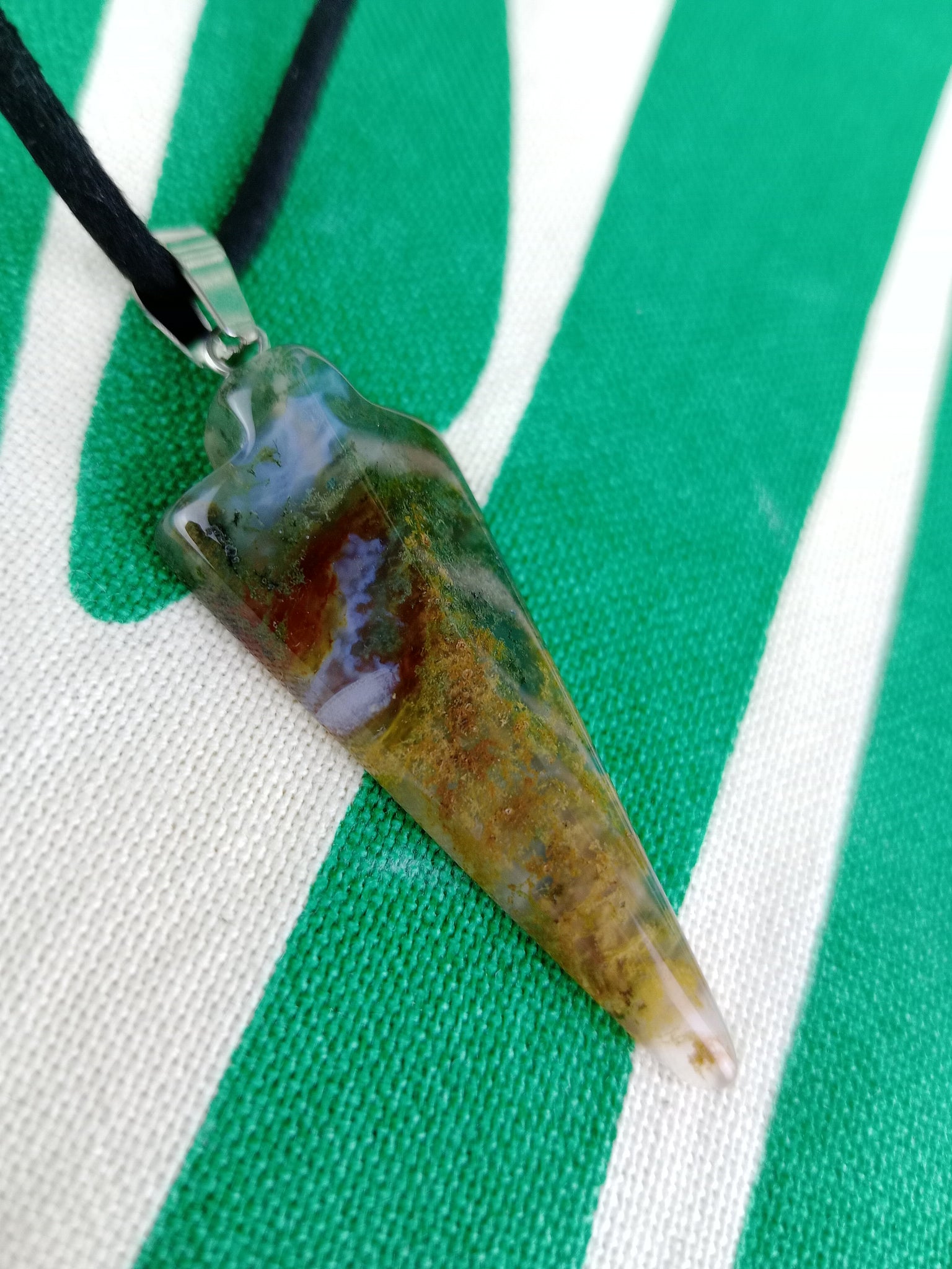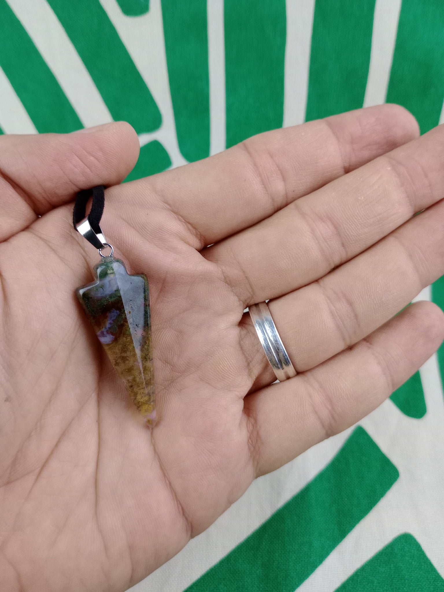 Material: Mineral natural Medida: 4.5 x 2 cm. Incluye Cordón negro