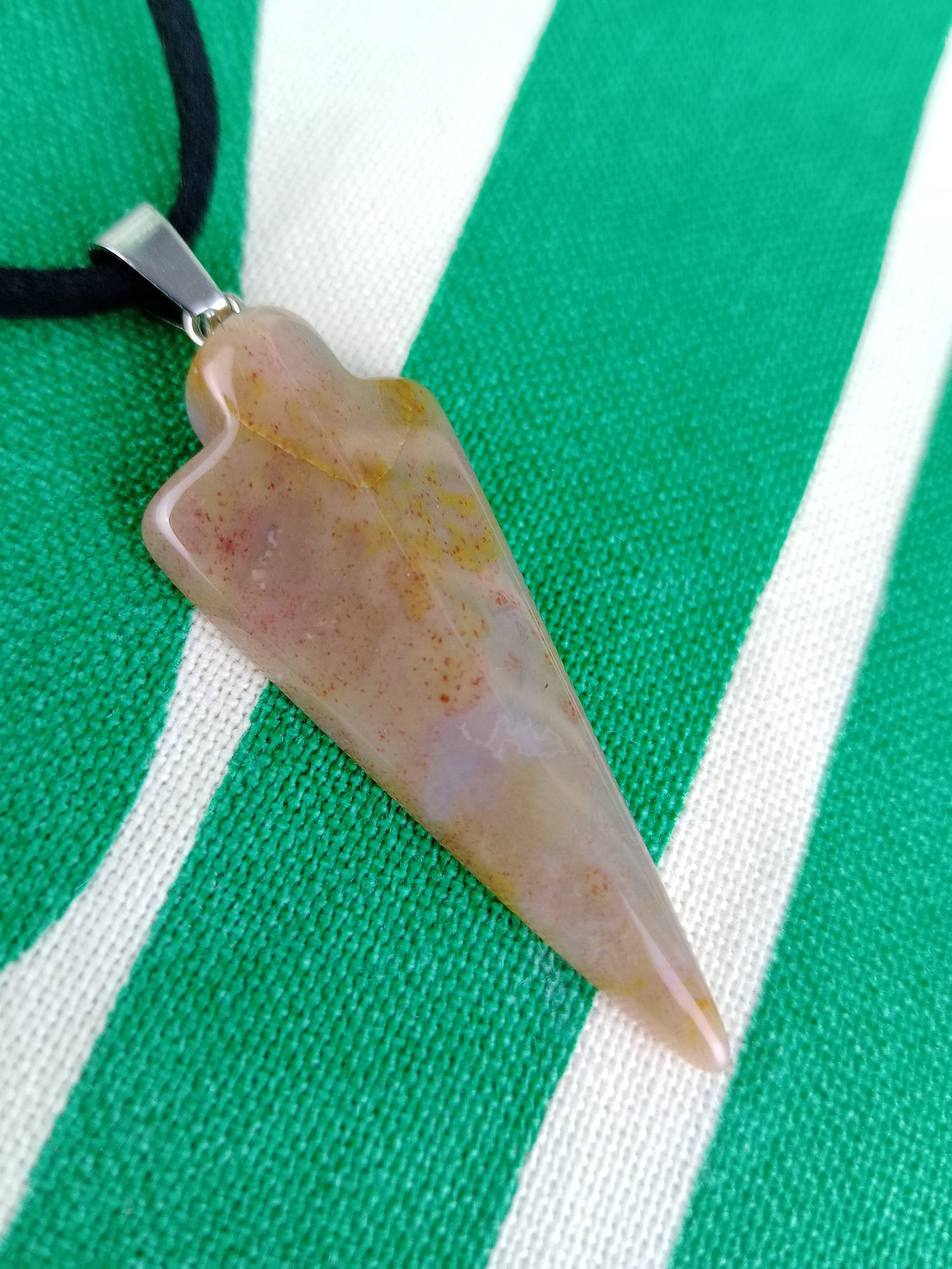 Material: Mineral natural Medida: 4.5 x 2 cm. Incluye Cordón negro