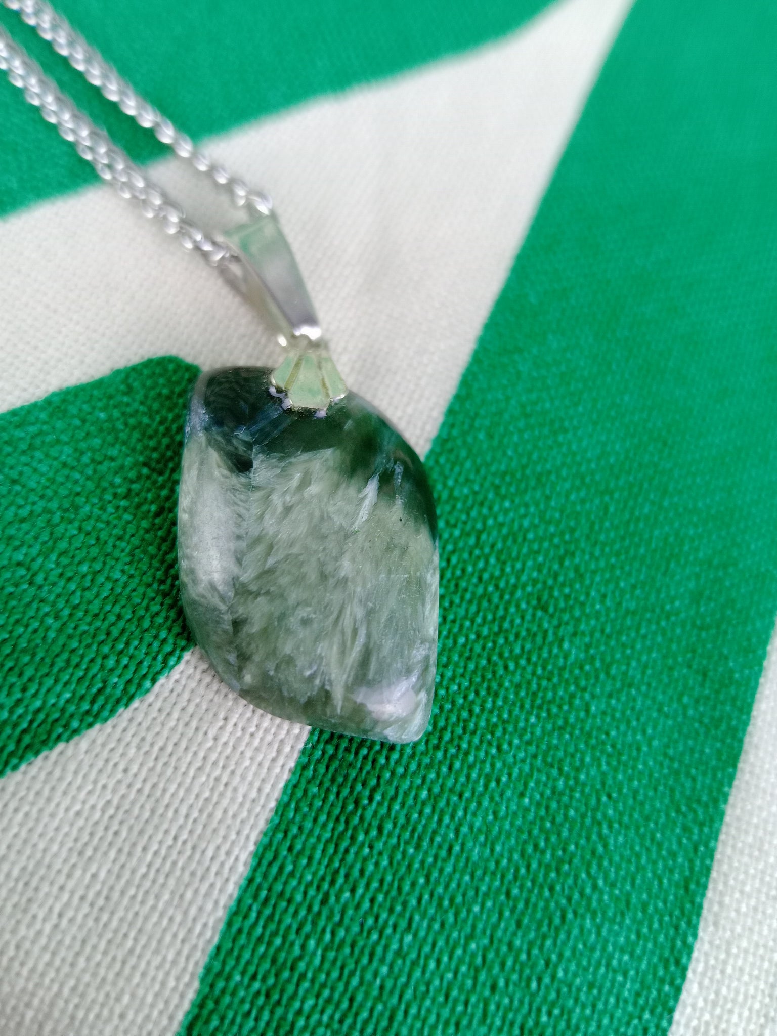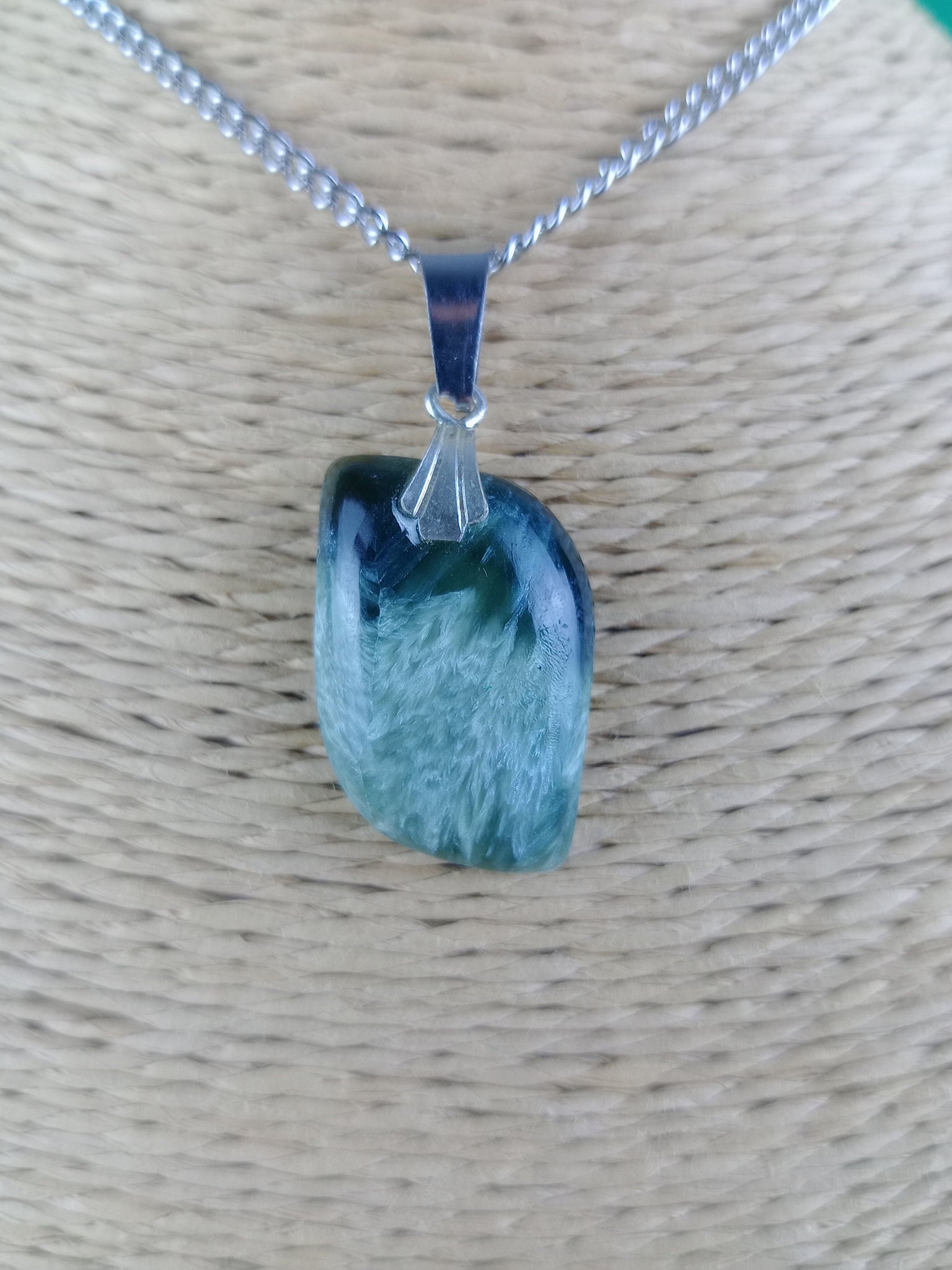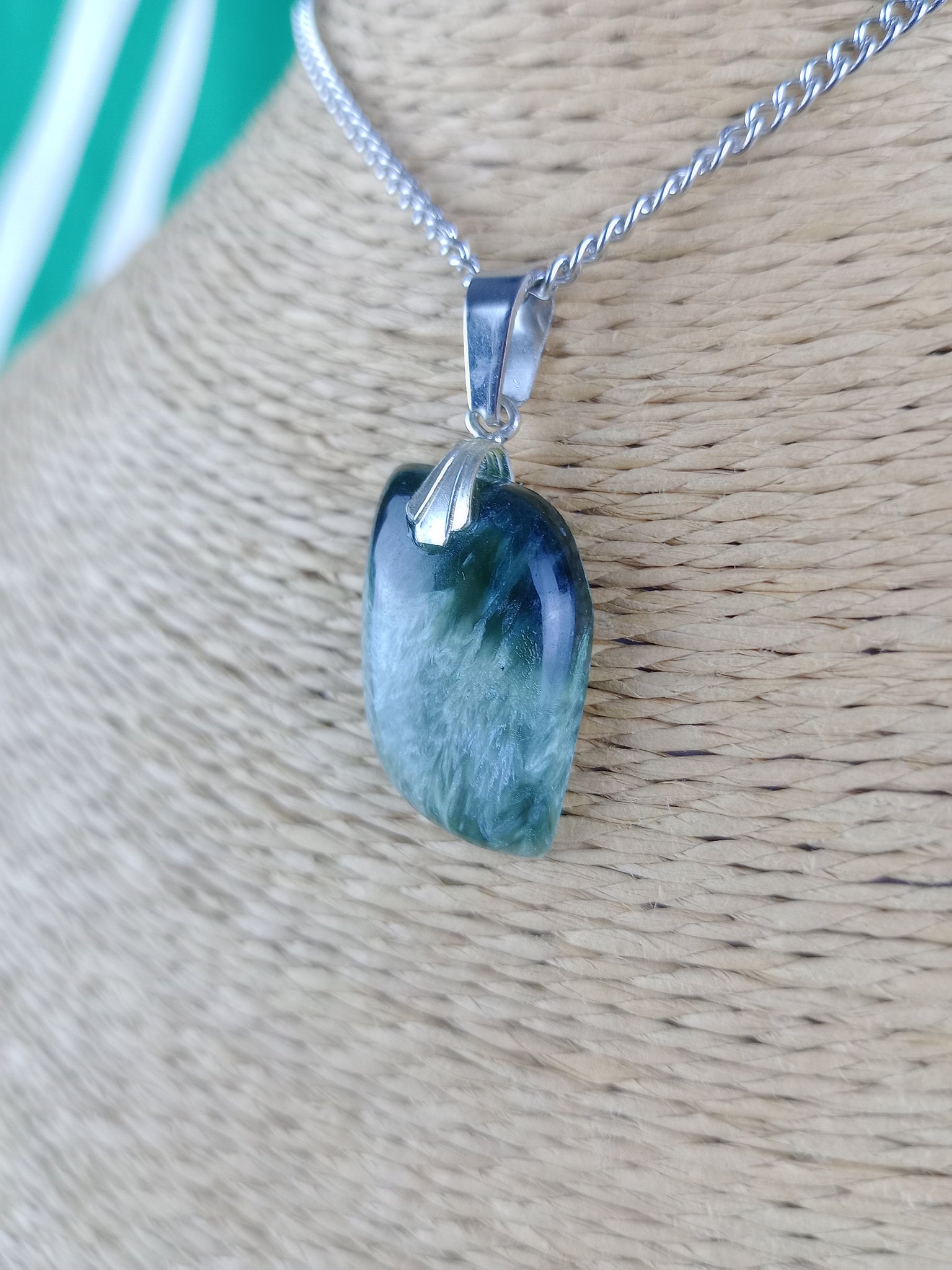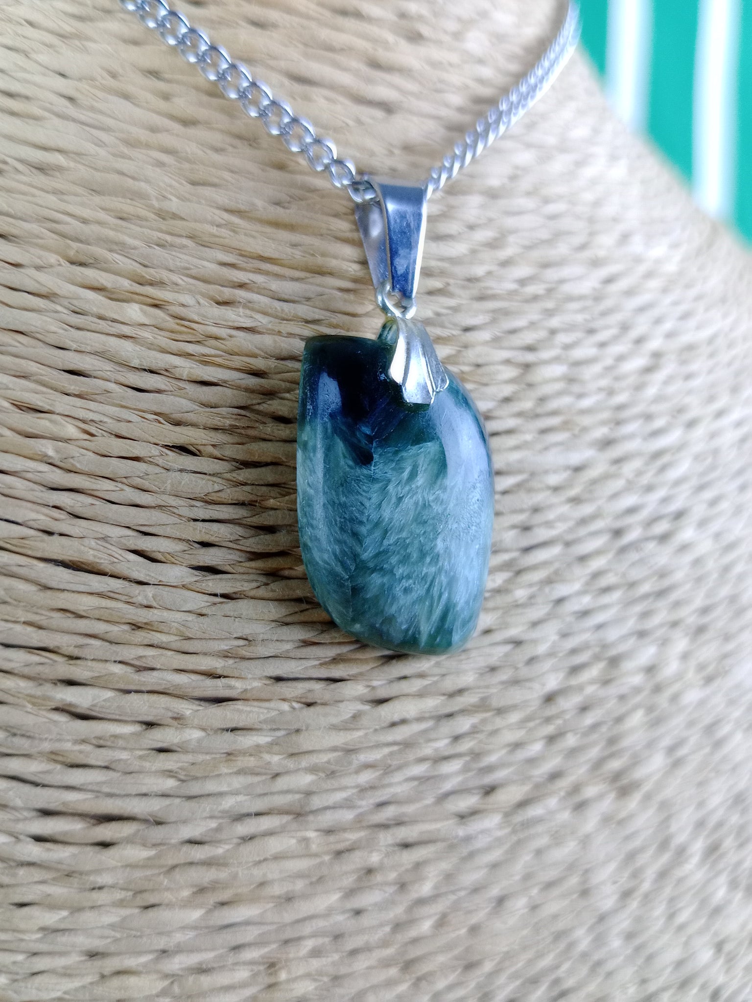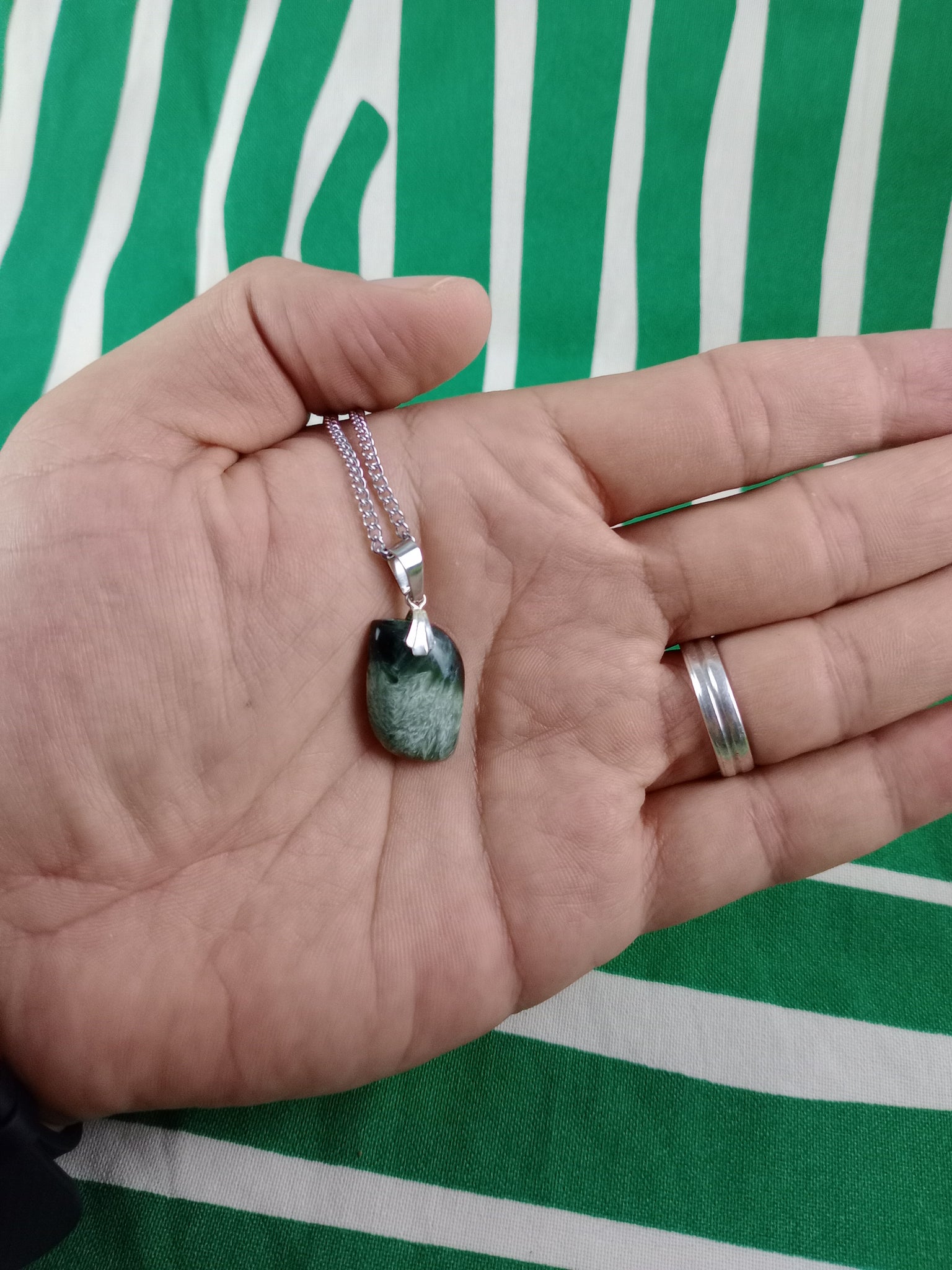 Material: Mineral y plata.Medidas: 2 x 1.5 cm. Cadena acero inoxidable de 50 cm.