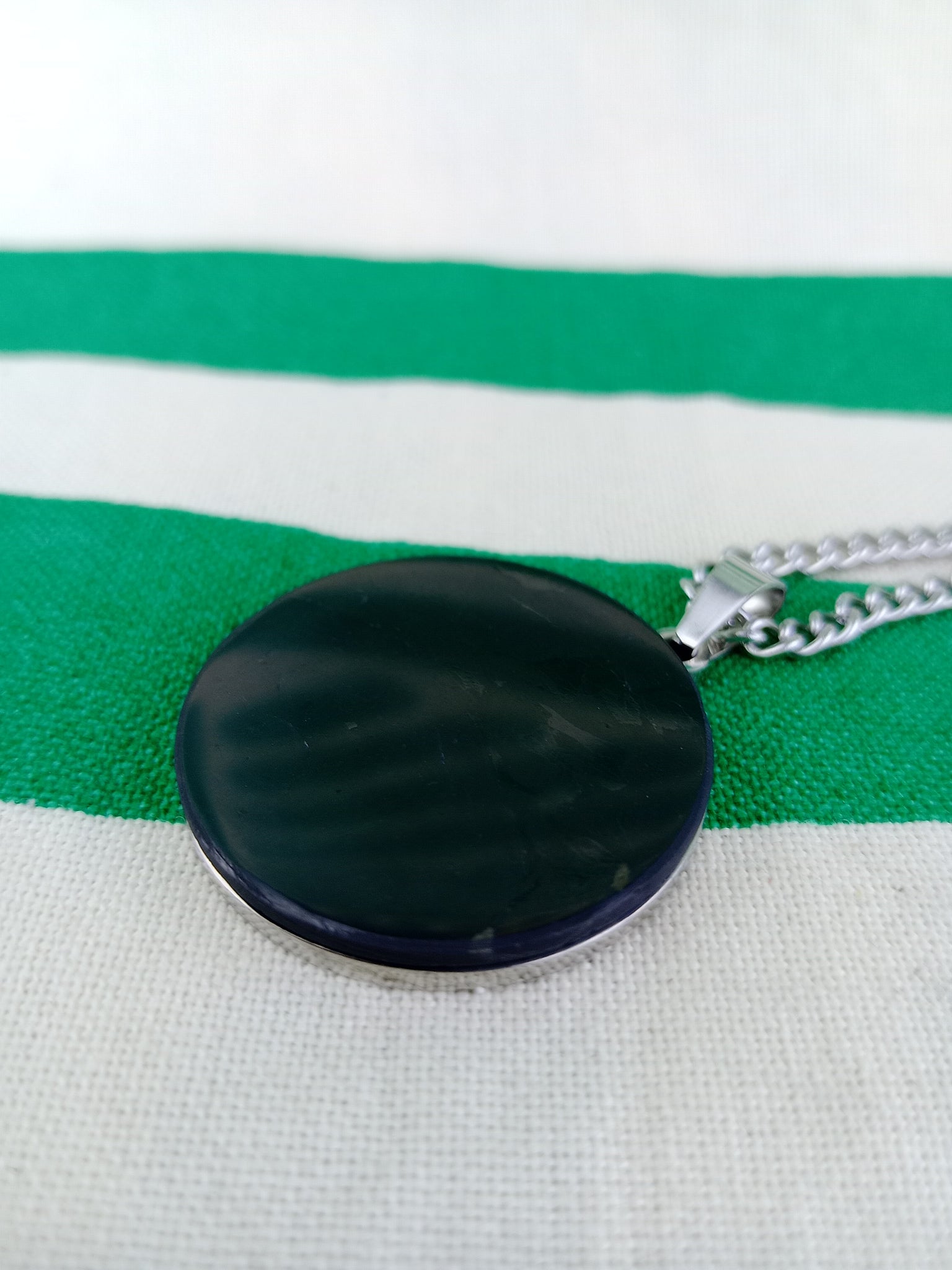 Material: Shunguita y Acero inoxidable. Medidas: 3 cm diámetro