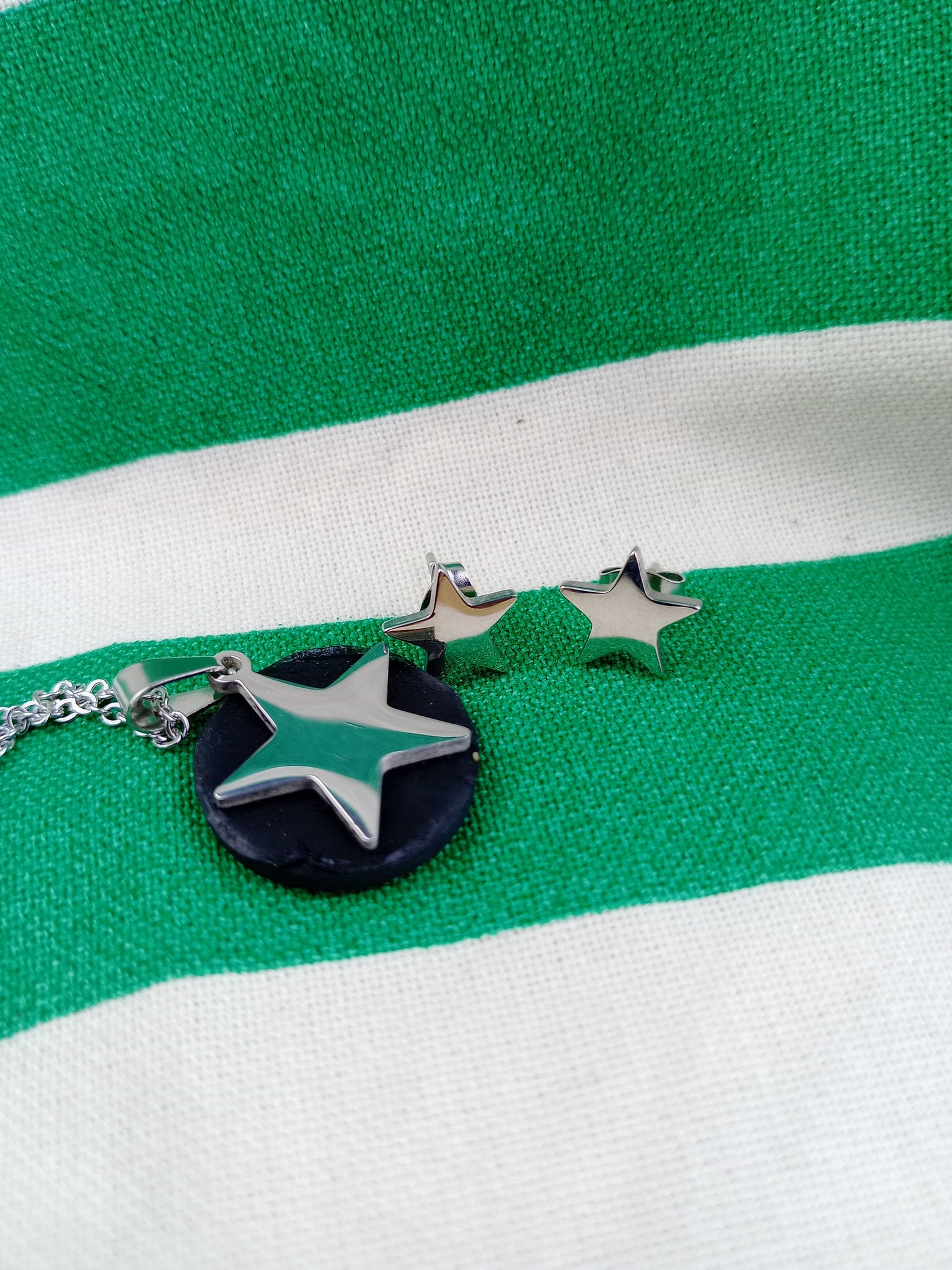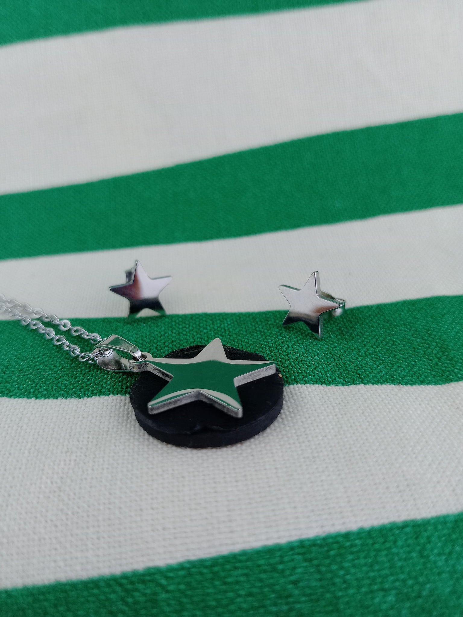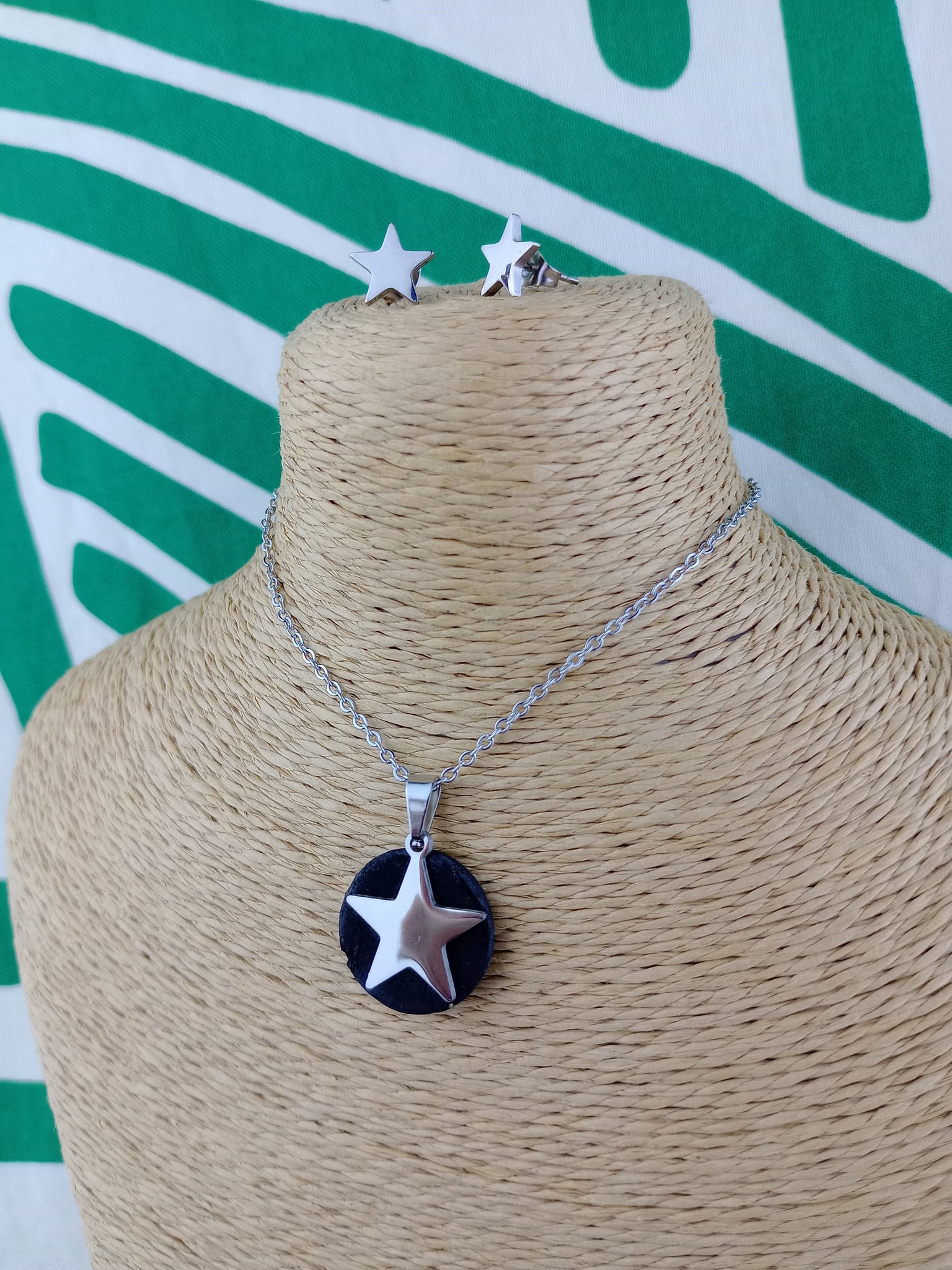 Material: Acero inoxidable y ShunguitaPendientes + colgante de 2 cm
