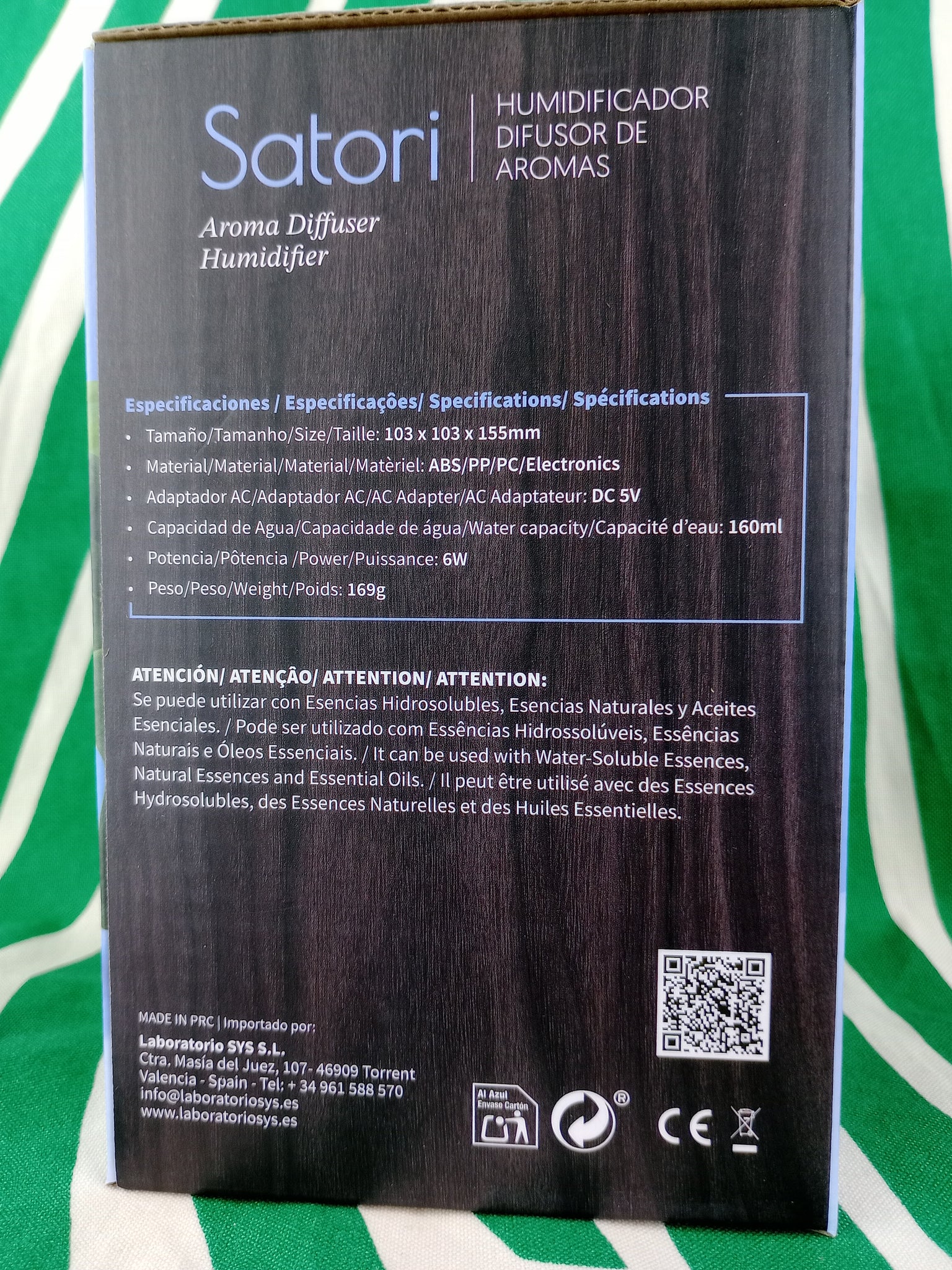Difusor de Esencias Ultrasonico Satori 160 ml