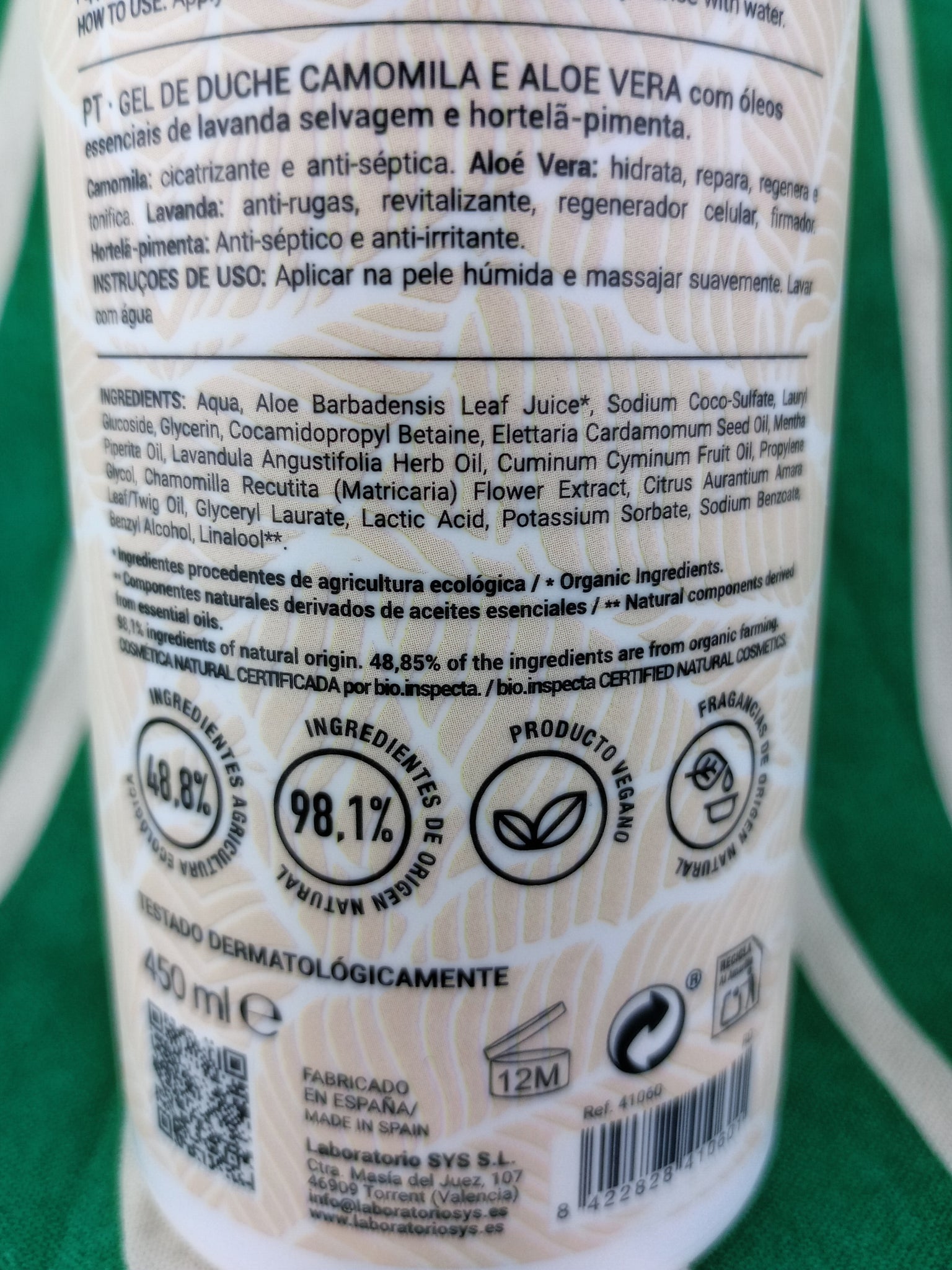 Gel de Ducha Manzanilla y Aloe Vera Bio 45 ml