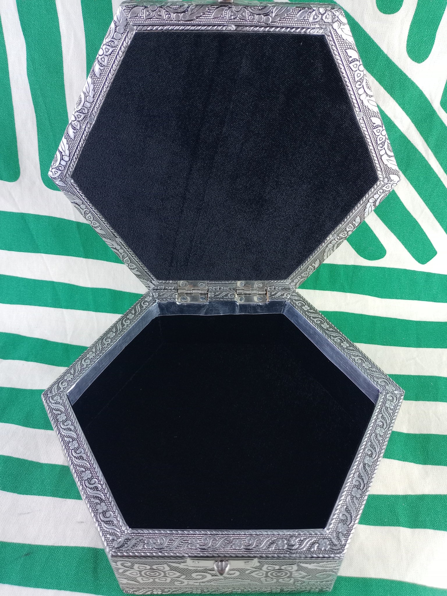 Metal, madera y terciopelo.