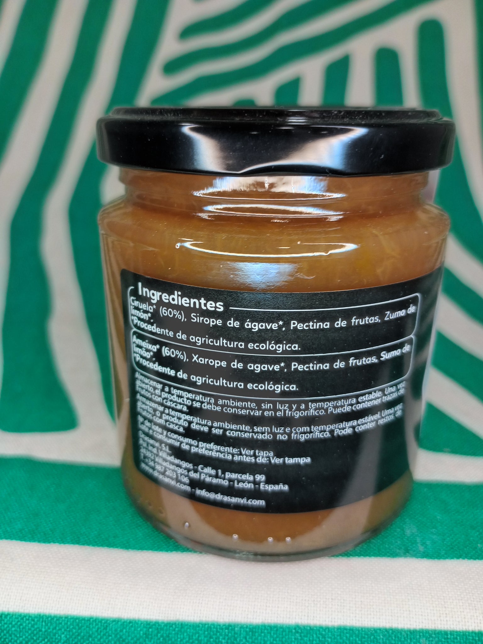 Ciruela* (60%), Sirope de agave*, Pectina de frutas, Zumo de limón*. *Procedente de agricultura ecológica