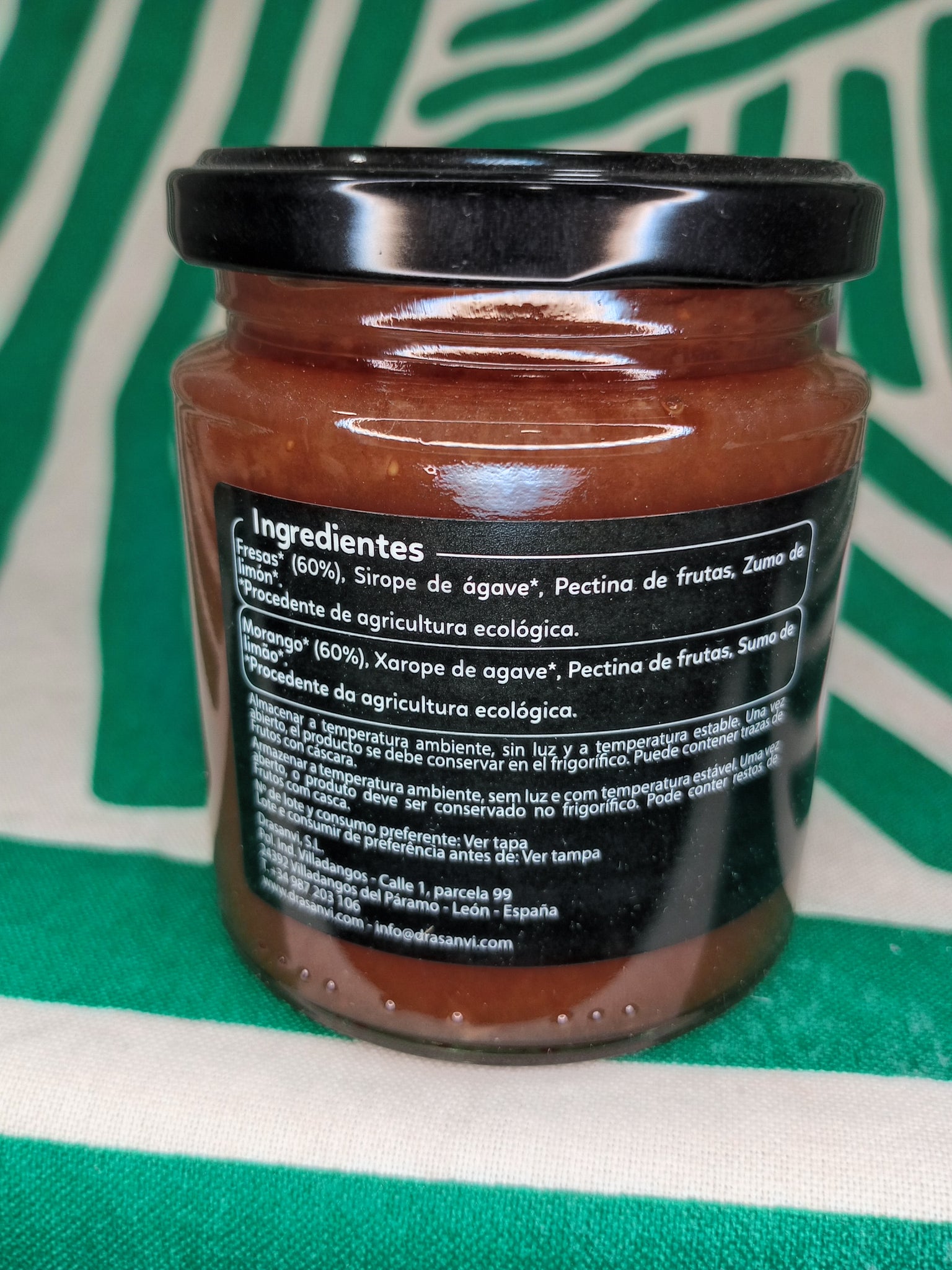 Fresa* (60%), Sirope de agave*, Pectina de frutas, Zumo de limón*. *Procedente de agricultura ecológica