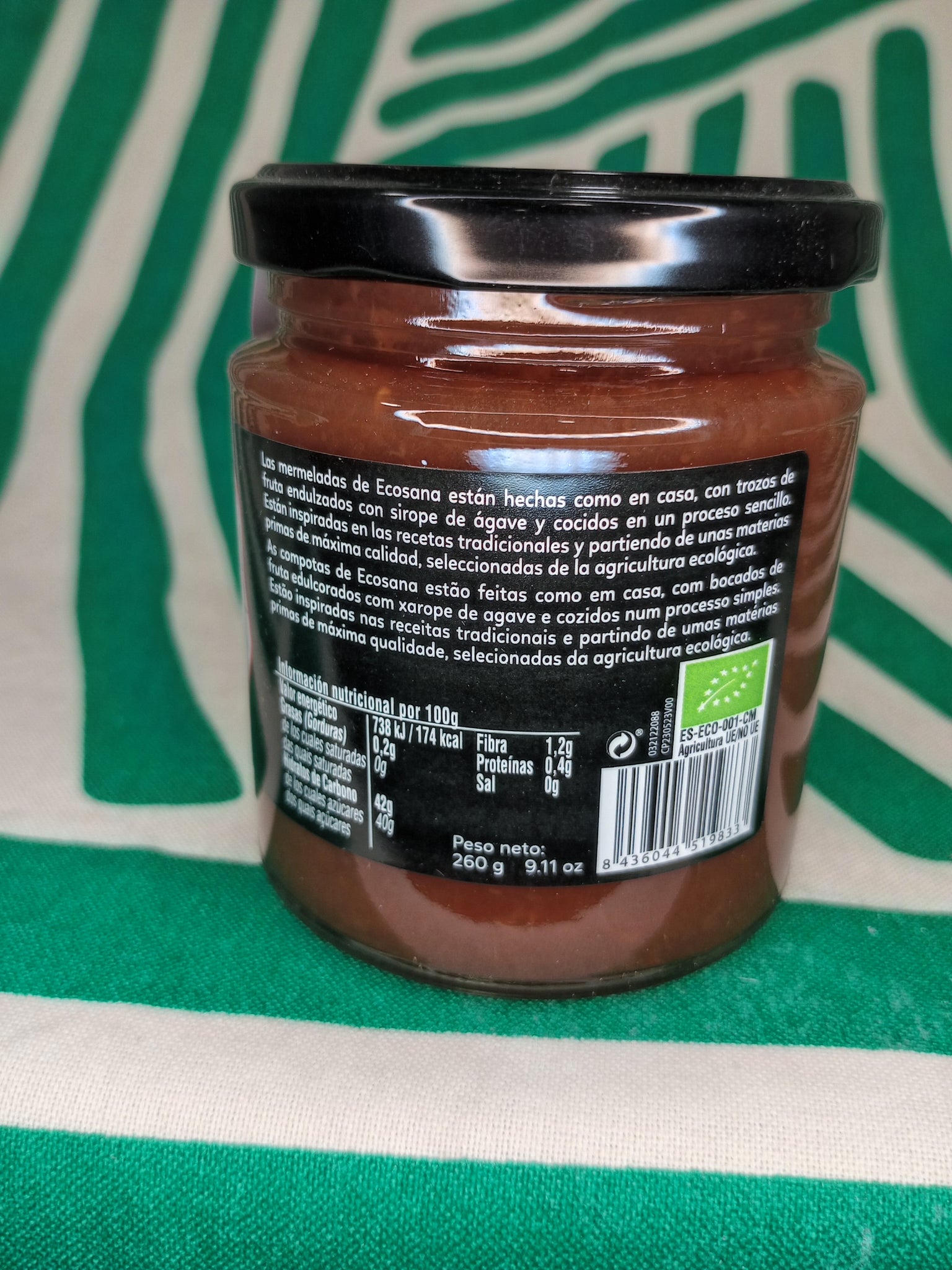 Las mermeladas de Ecosana están hechas como en casa, con trozos de fruta endulzados con sirope de agave y cocidos en un proceso sencillo. Están inspiradas en las recetas tradicionales y partiendo de unas materias primas de máxima calidad, seleccionadas de la agricultura ecológica.