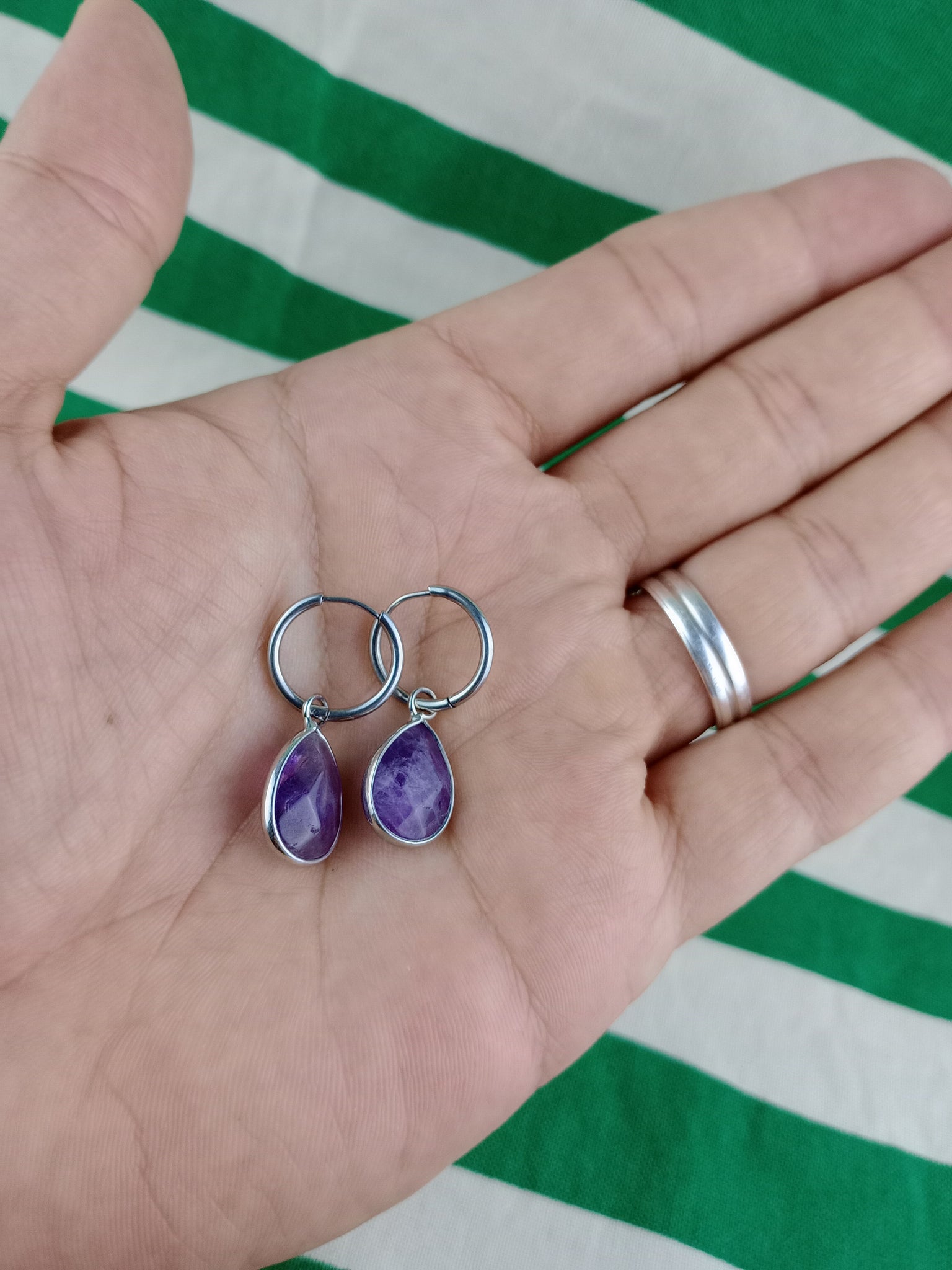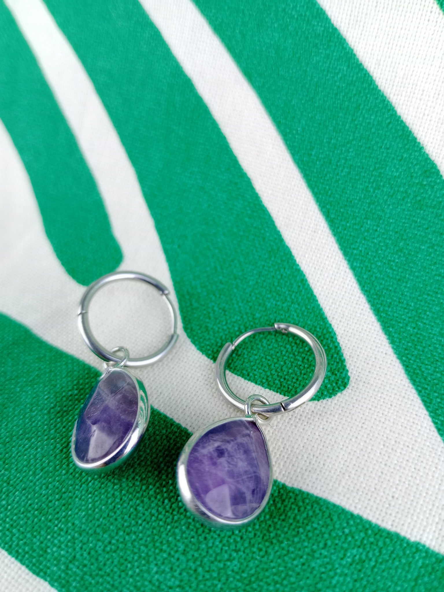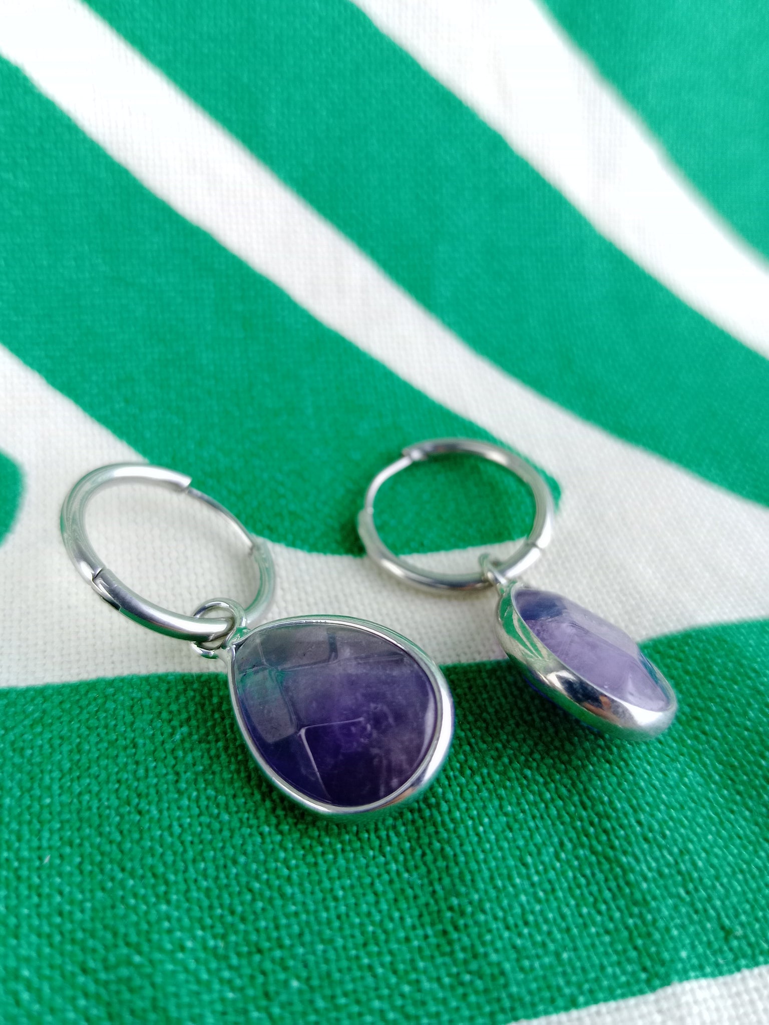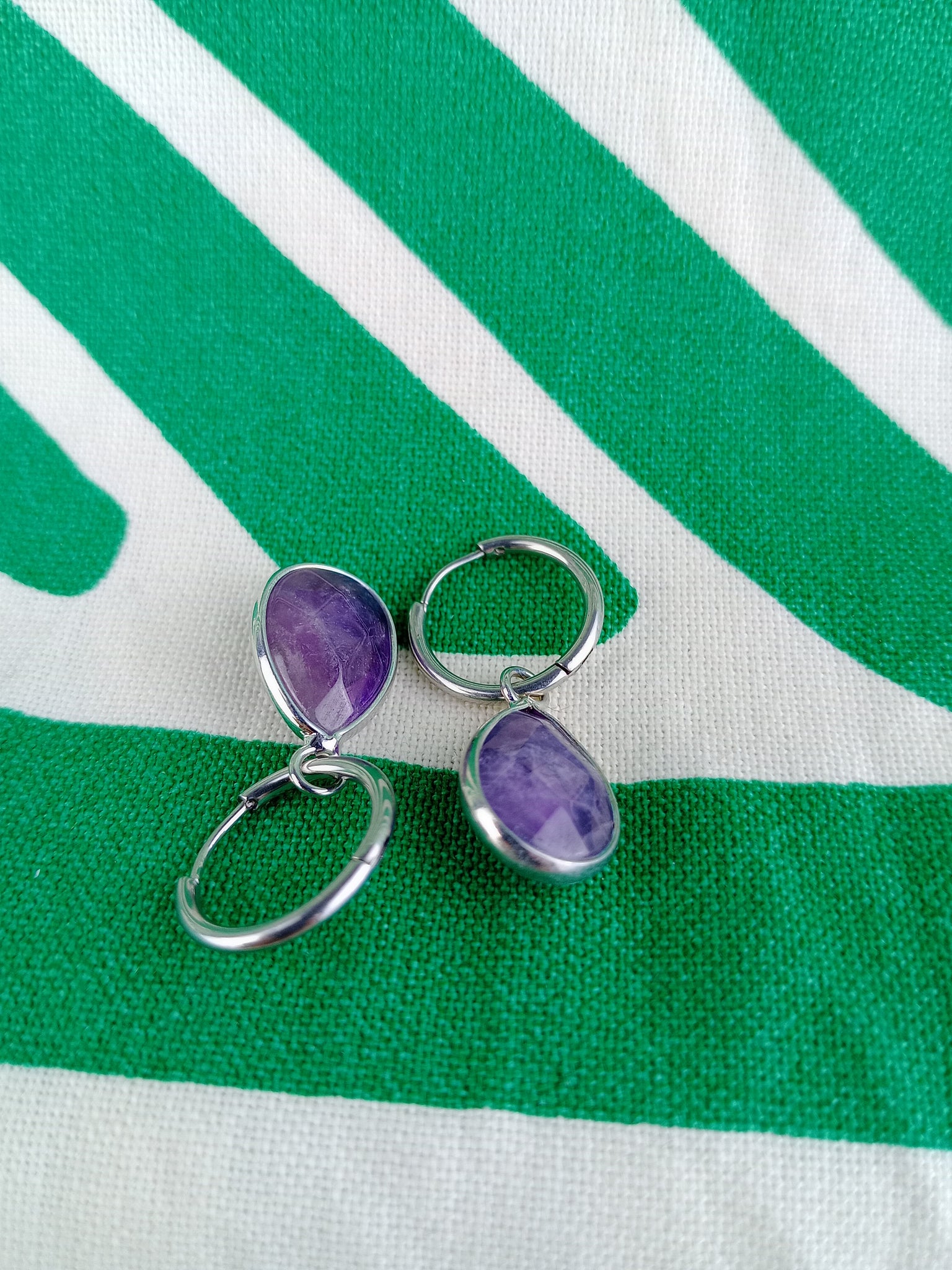 Pendientes Amatista Aro de Acero inoxidable Mod 2
