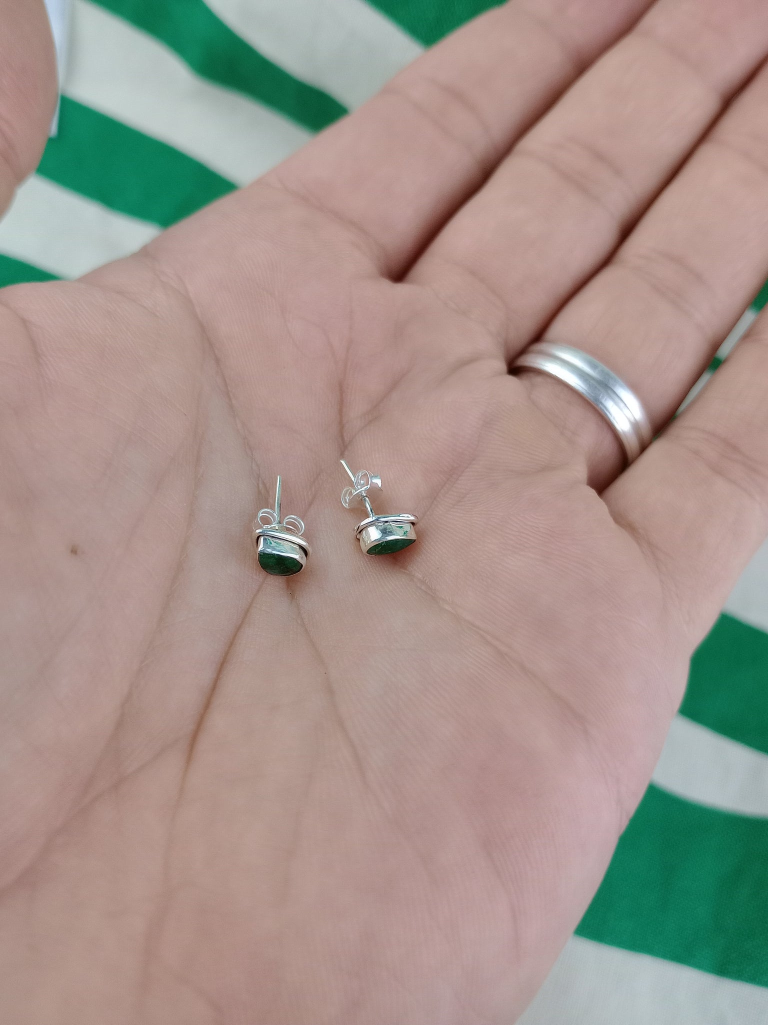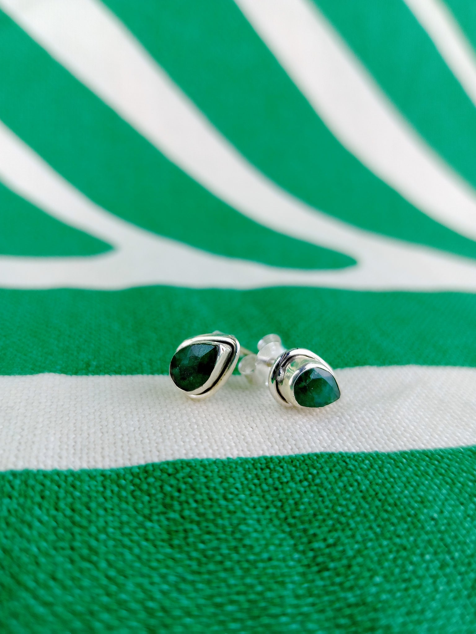 Pendientes Pin Esmeralda Lagrima Plata