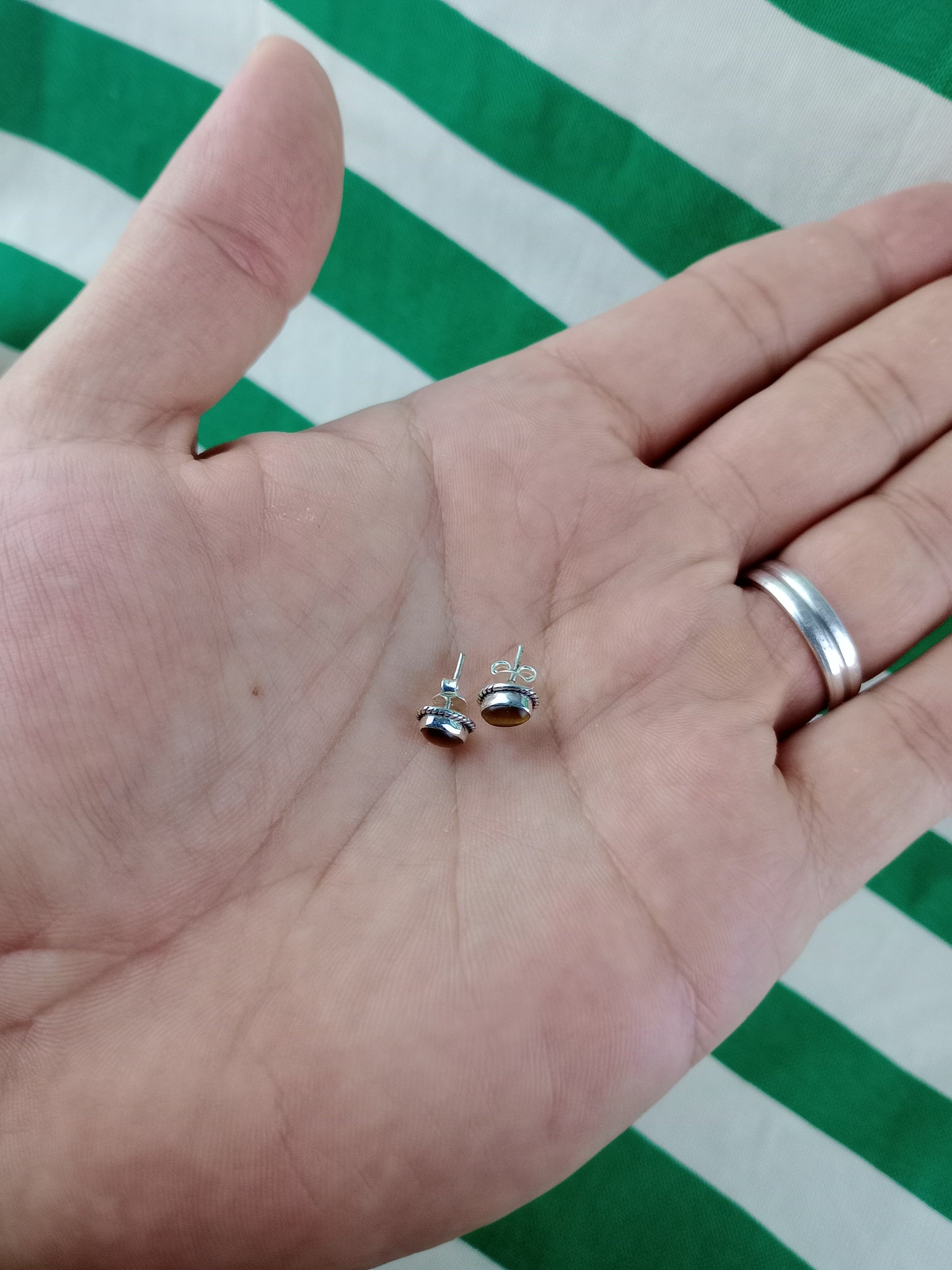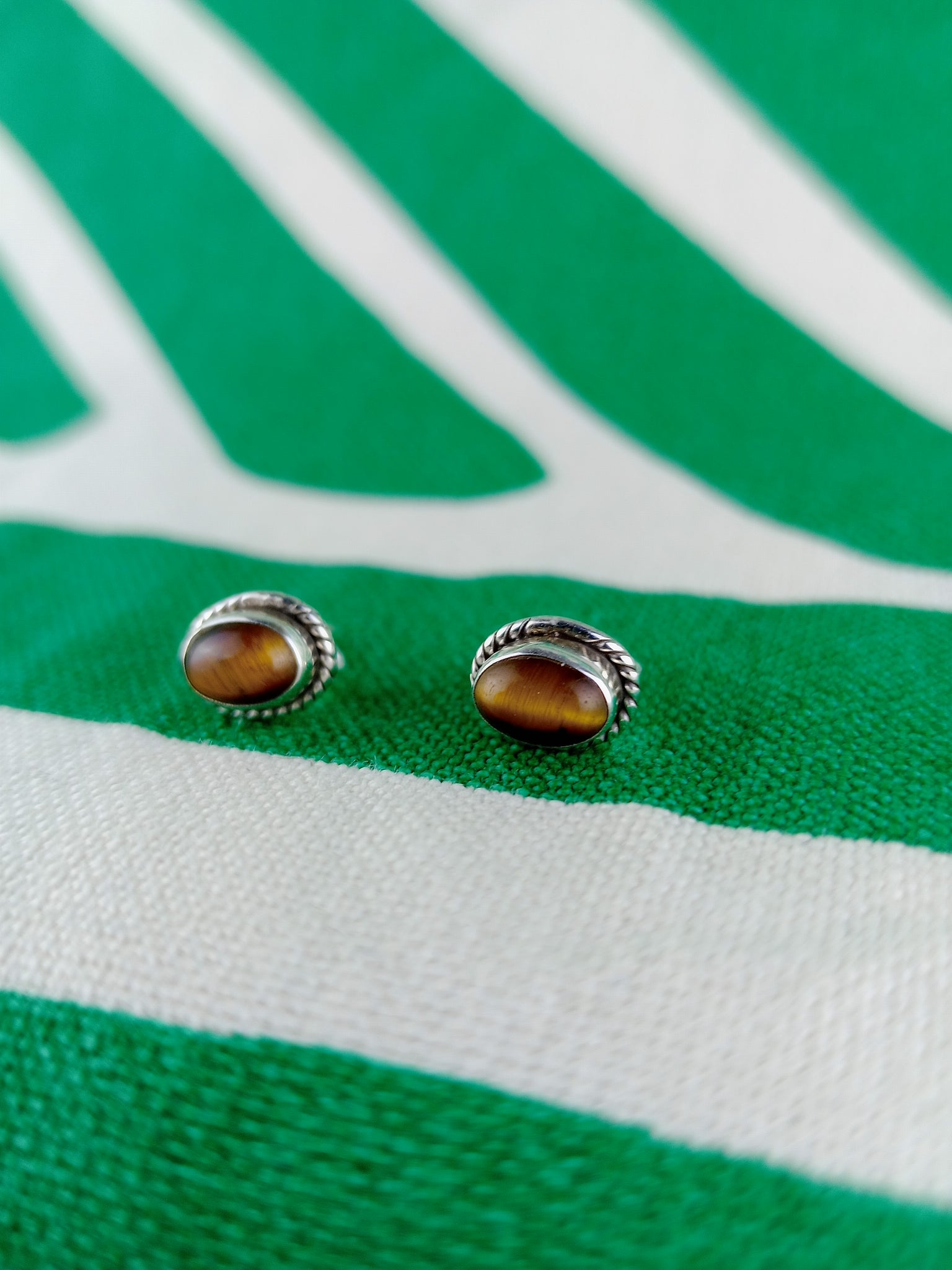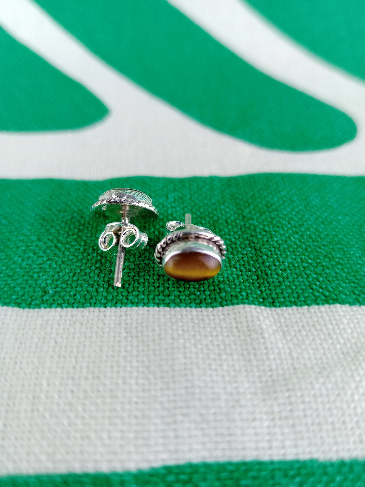 Pendientes Pin Oval Ojo de Tigre Plata
