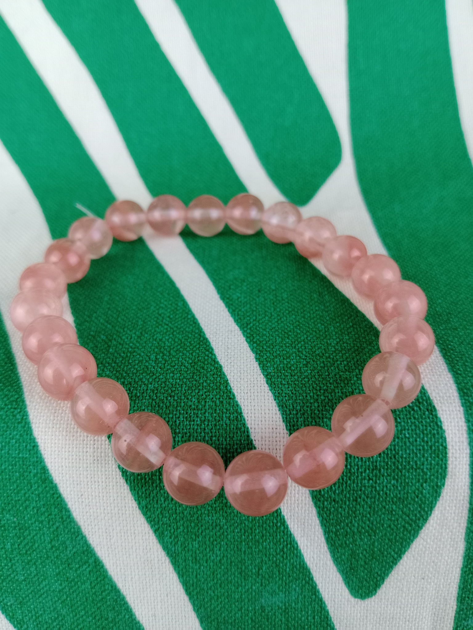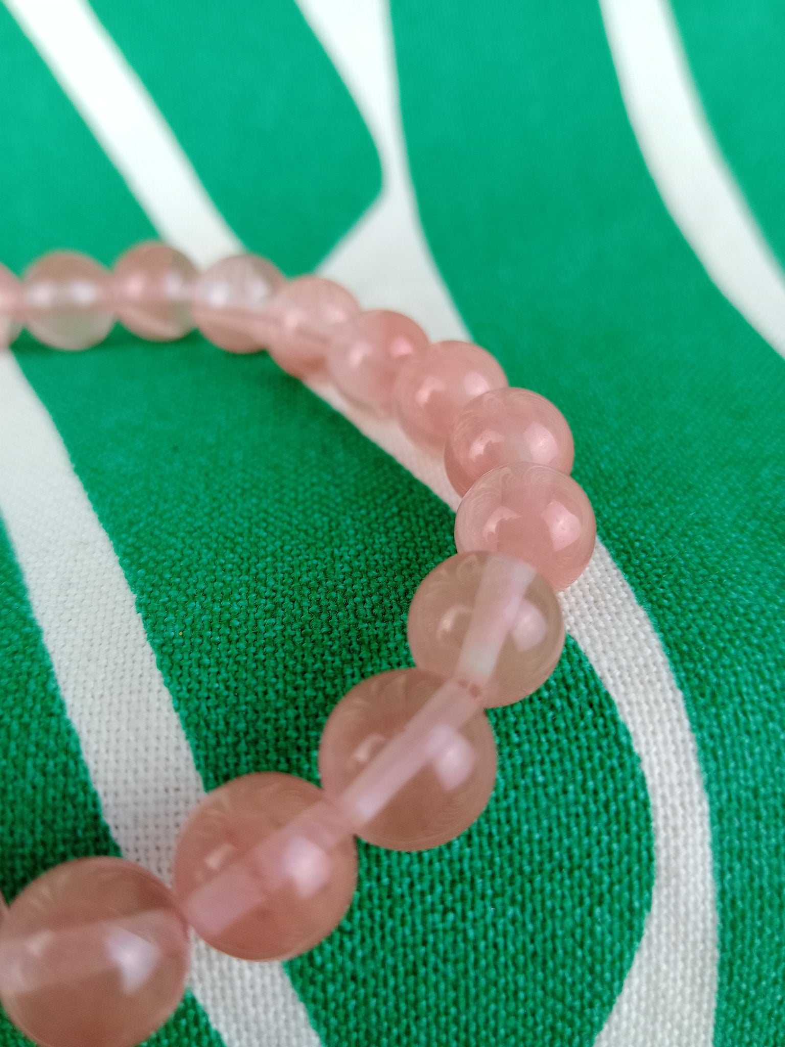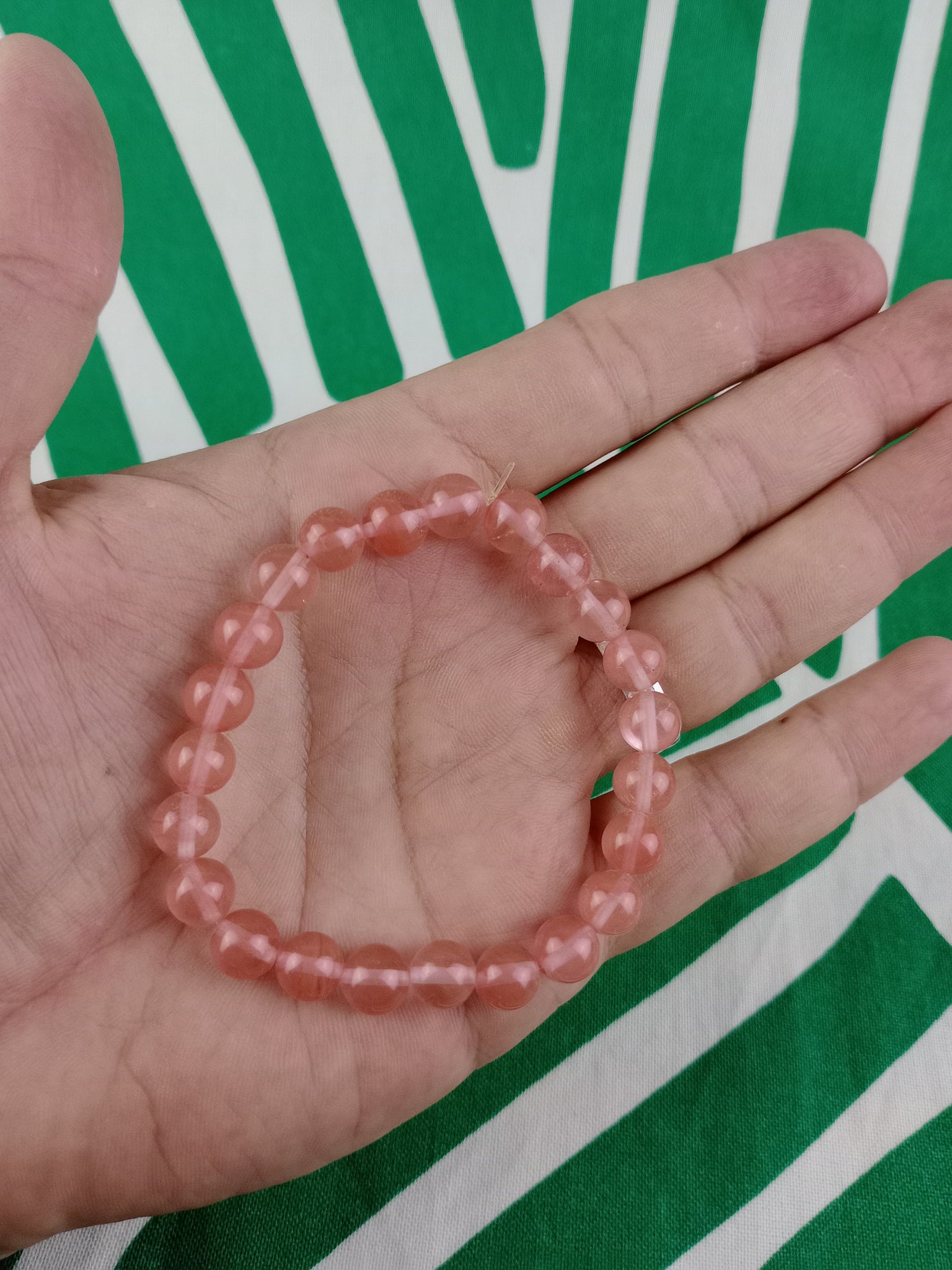 Mineral semi transparente con suave tonos rojo pastel. Este chakra ayuda a equilibrar la parte emocional del chakra corazon.