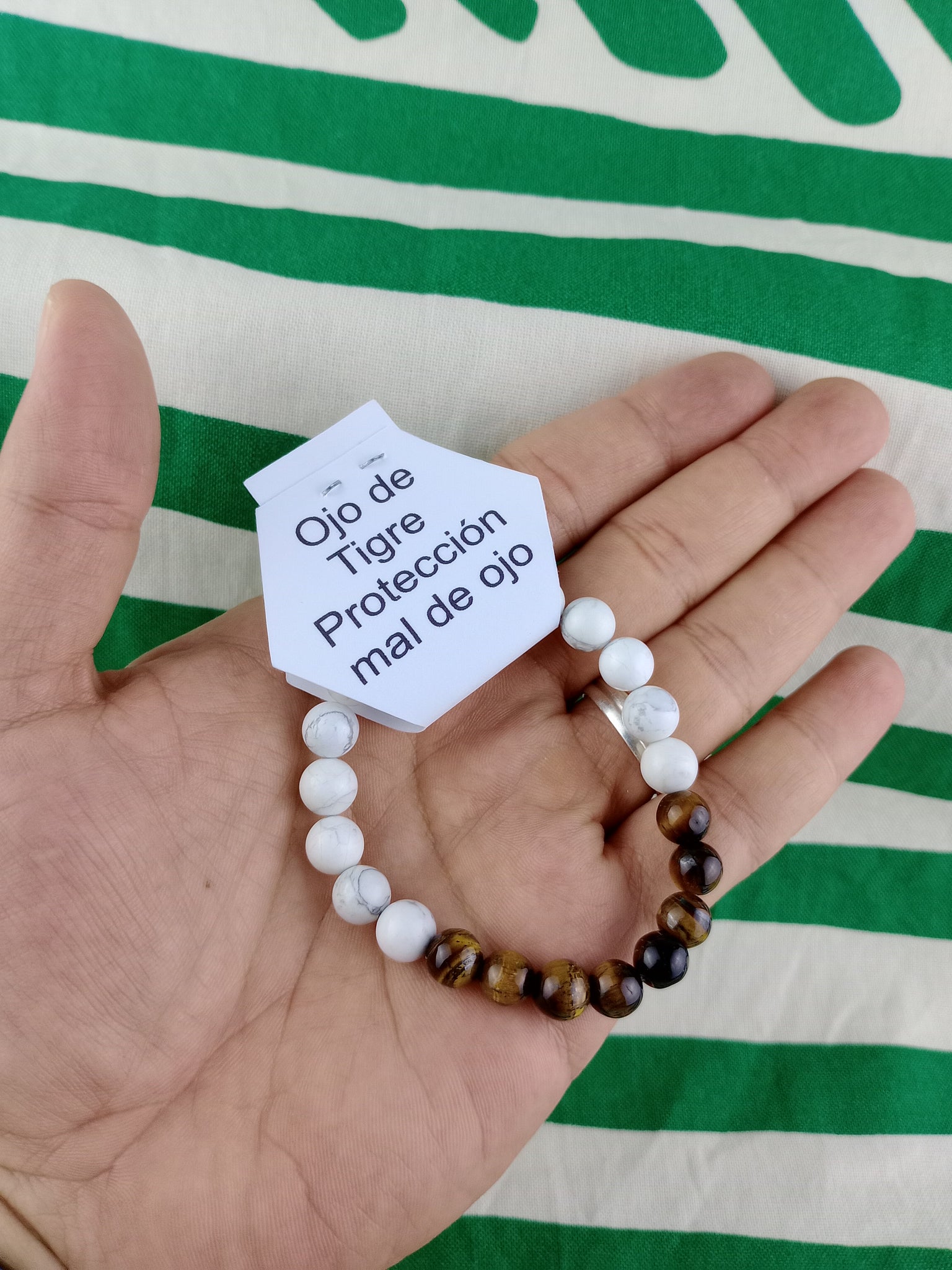 Pulsera Ojo de Tigre + Howlita 8 mm